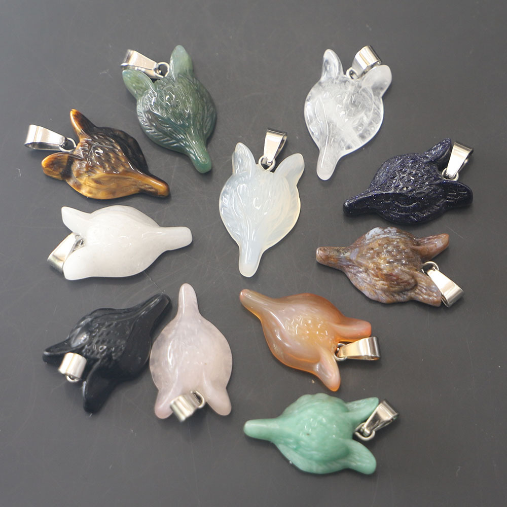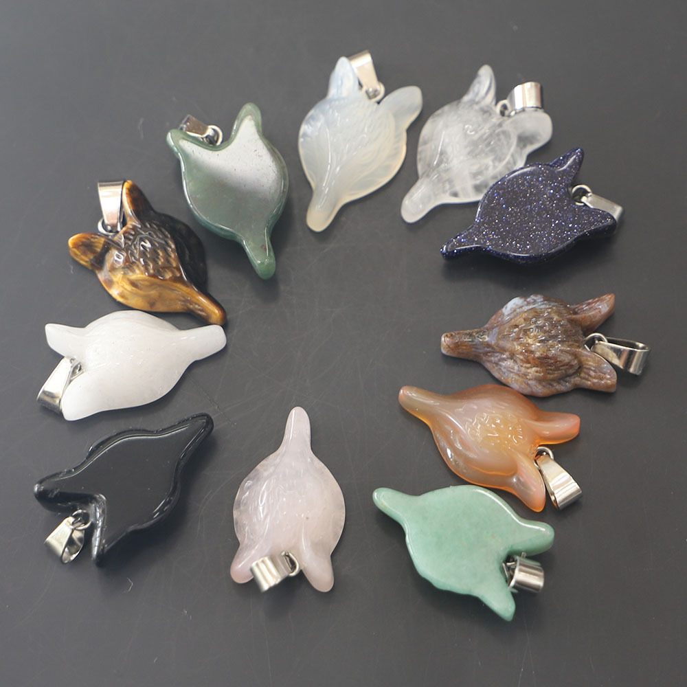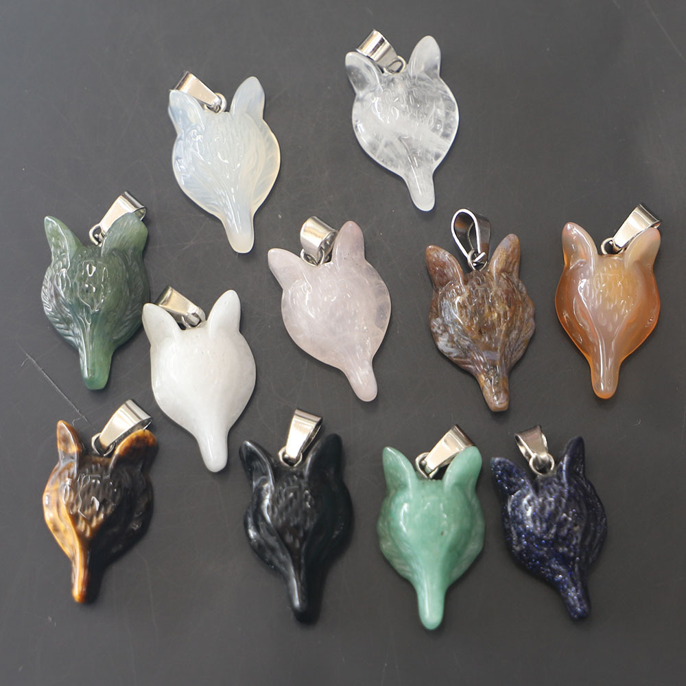 Pendentif bijoux de pierre gemme, avec fer & Acier inoxydable 304, renard, gravé, DIY, plus de couleurs à choisir, 26x16x8mm, Vendu par PC