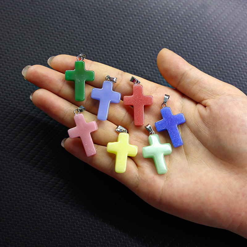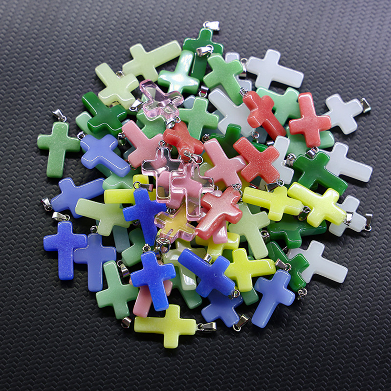 Pendentif bijoux de pierre gemme, Nuit-Lumière-Pierre, avec fer & Acier inoxydable 304, croix, DIY, plus de couleurs à choisir, 15x32x2mm, Vendu par PC