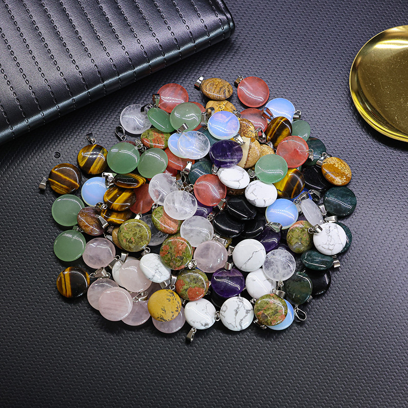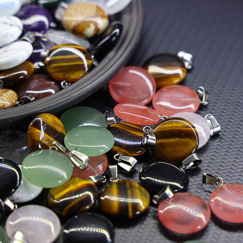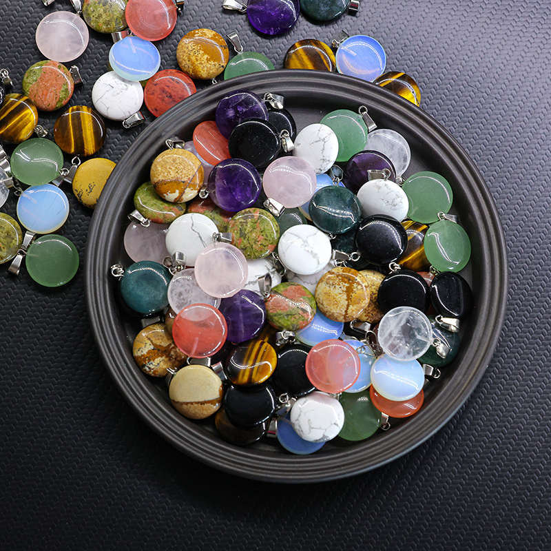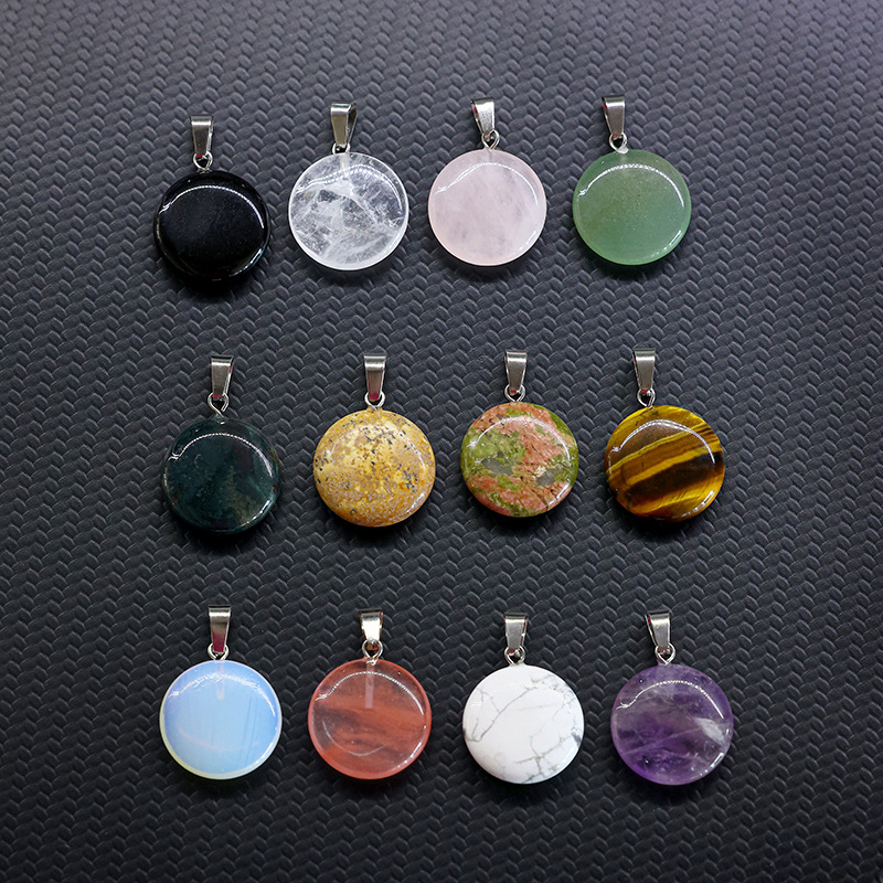 Pendentif bijoux de pierre gemme, avec fer & Acier inoxydable 304, Plat rond, DIY & différents matériaux pour le choix, plus de couleurs à choisir, 20x5mm, Vendu par PC