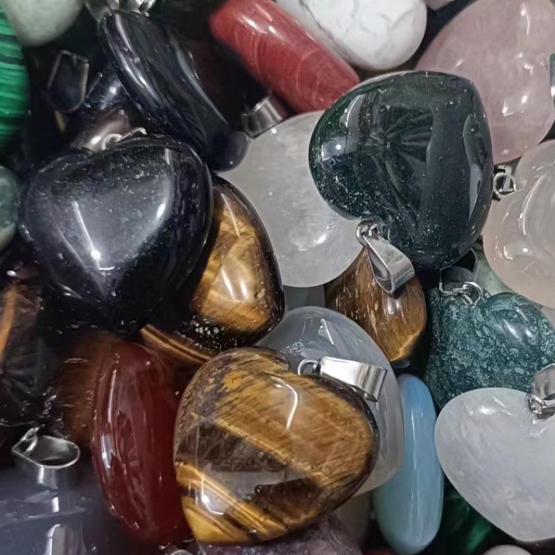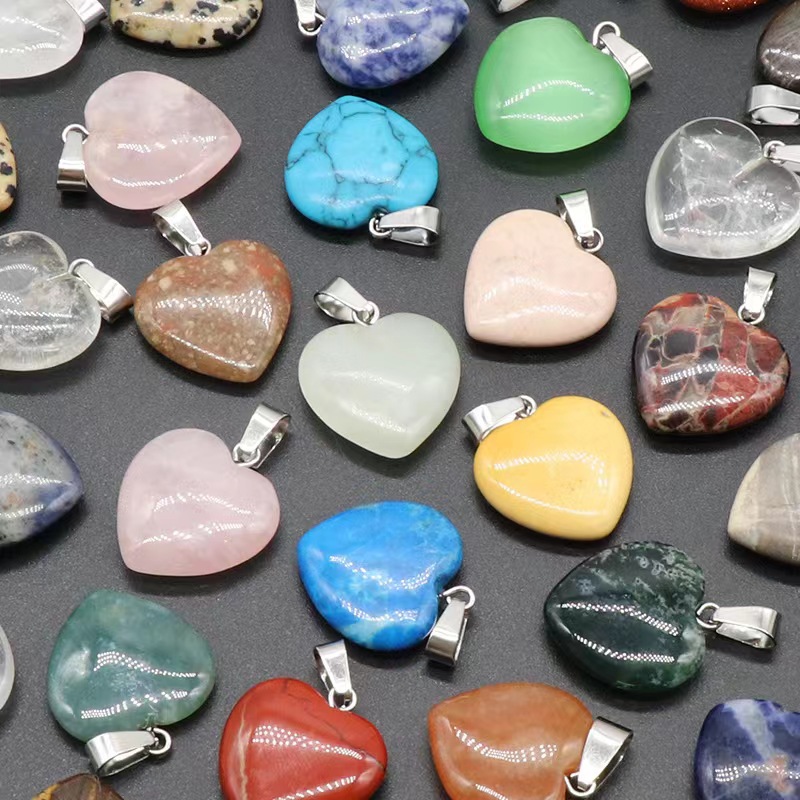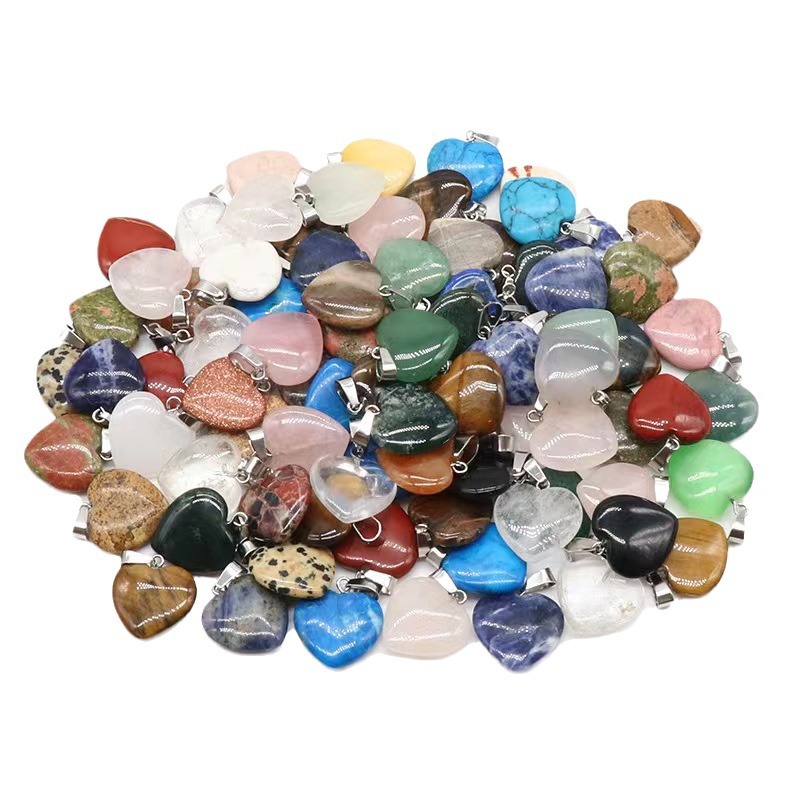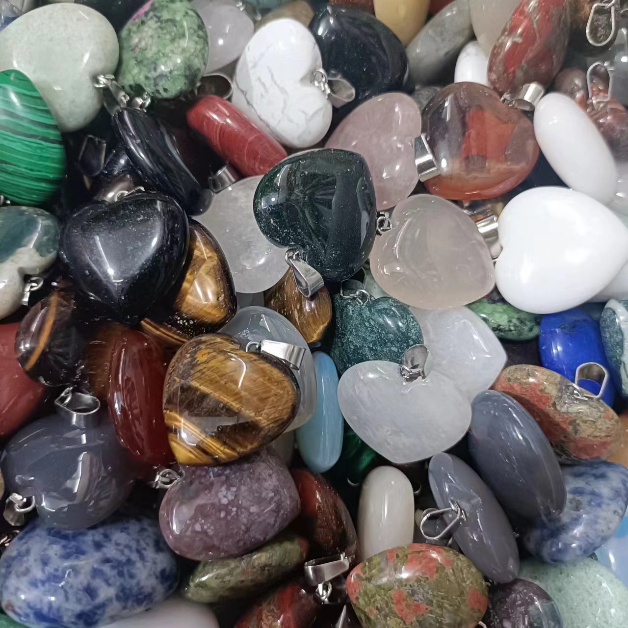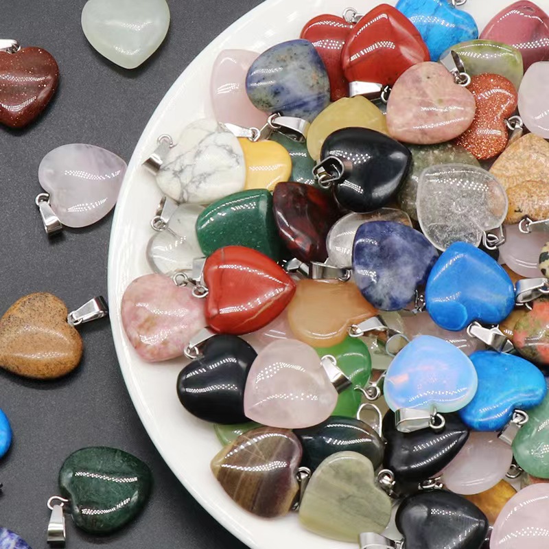 Pendentif bijoux de pierre gemme, avec fer & Acier inoxydable 304, coeur, DIY & normes différentes pour le choix, Couleur aléatoire, Vendu par PC