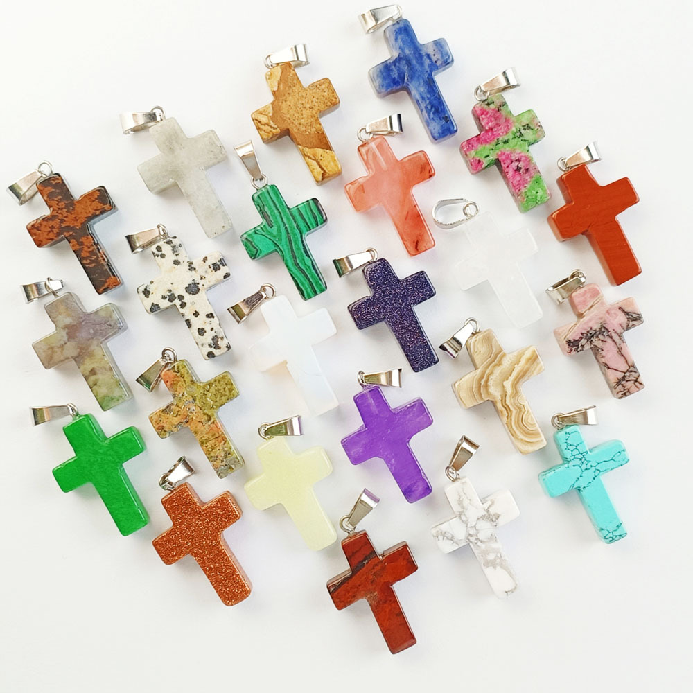 Pendentif bijoux de pierre gemme, Pierre naturelle, croix, DIY & différents matériaux pour le choix, plus de couleurs à choisir, 25x18mm, Vendu par PC