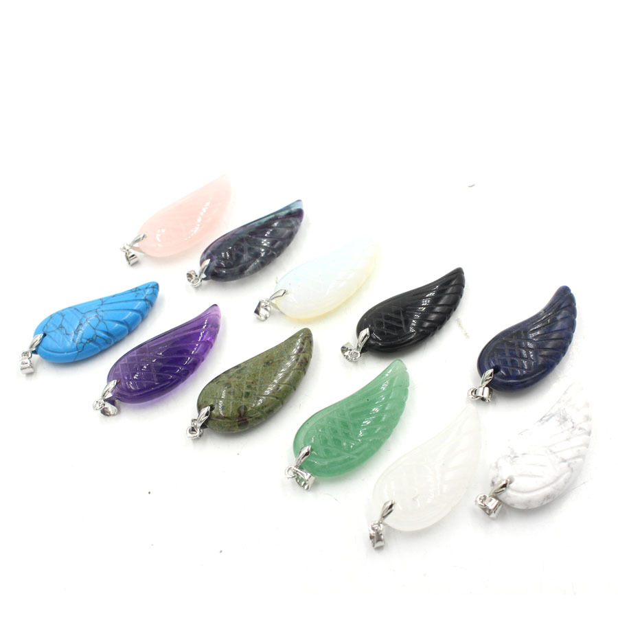 Pendentif bijoux de pierre gemme, Pierre naturelle, forme d'aile, DIY & différents matériaux pour le choix, plus de couleurs à choisir, 37x17x8mm, Vendu par PC