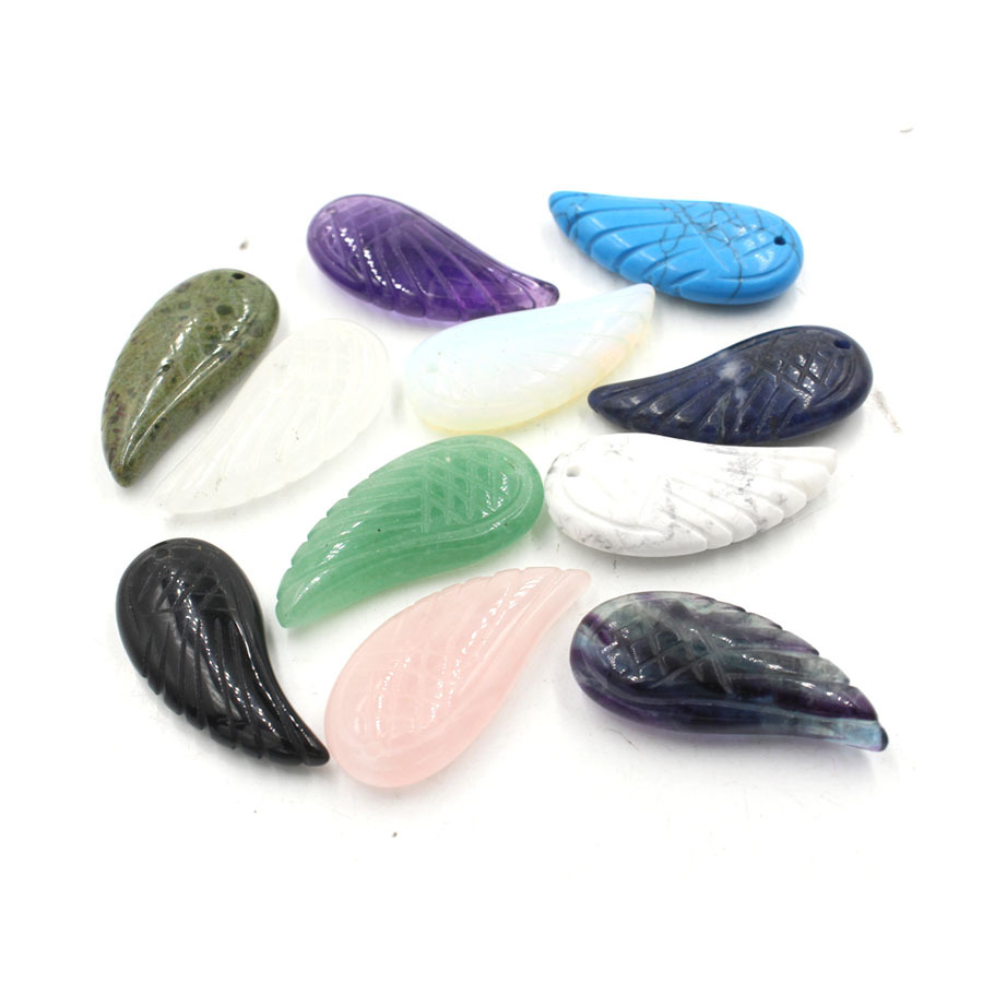 Pendentif bijoux de pierre gemme, Pierre naturelle, forme d'aile, DIY & différents matériaux pour le choix, plus de couleurs à choisir, 37x17x8mm, Vendu par PC