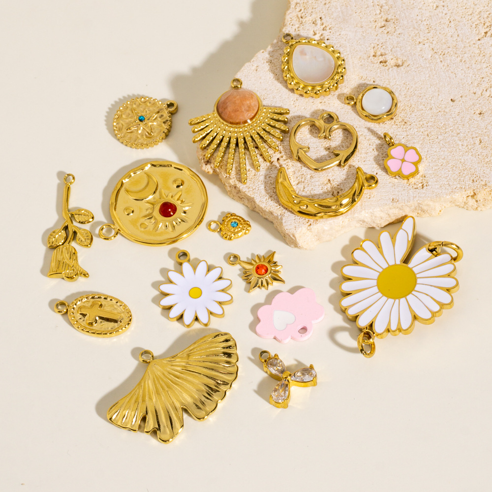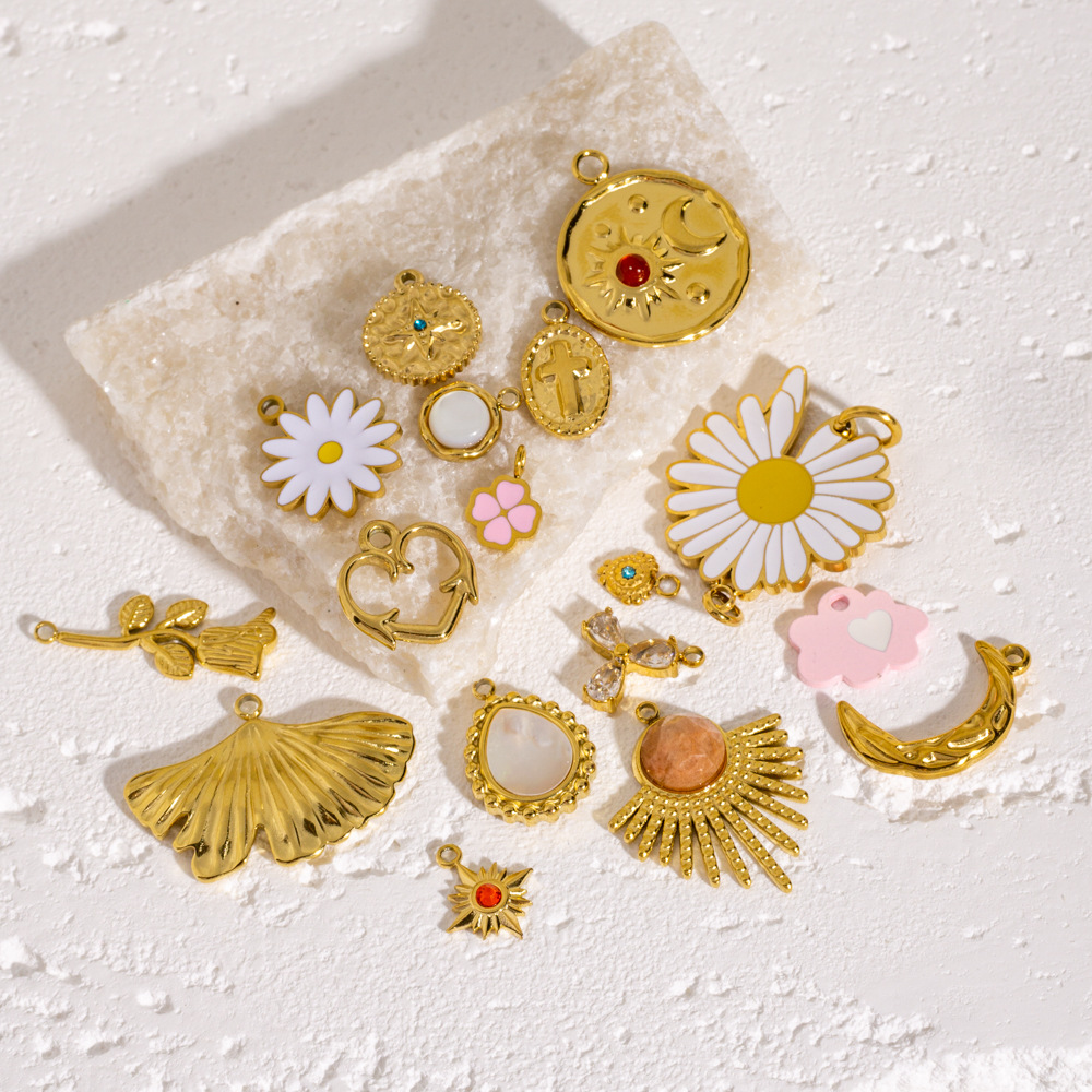 Pendentif bijoux de pierre gemme, Acier inoxydable 304, avec pierre gemme & coquille blanche, Placage ionique sous vide, Forme différente pour le choix & DIY & émail & avec strass, plus de couleurs à choisir, Vendu par PC