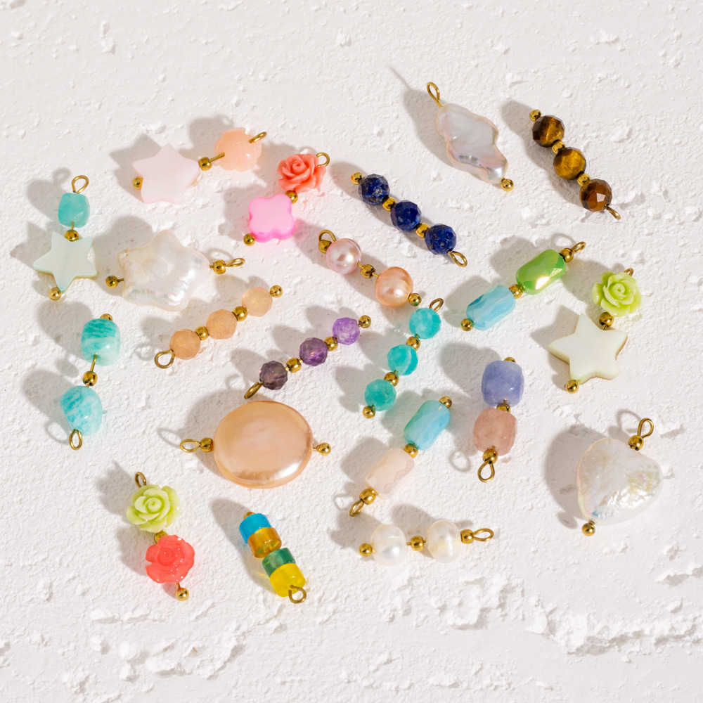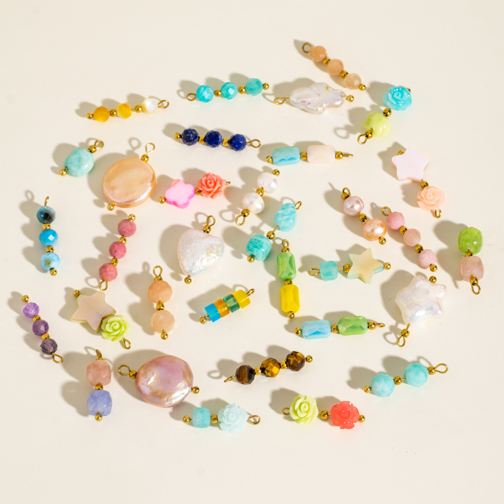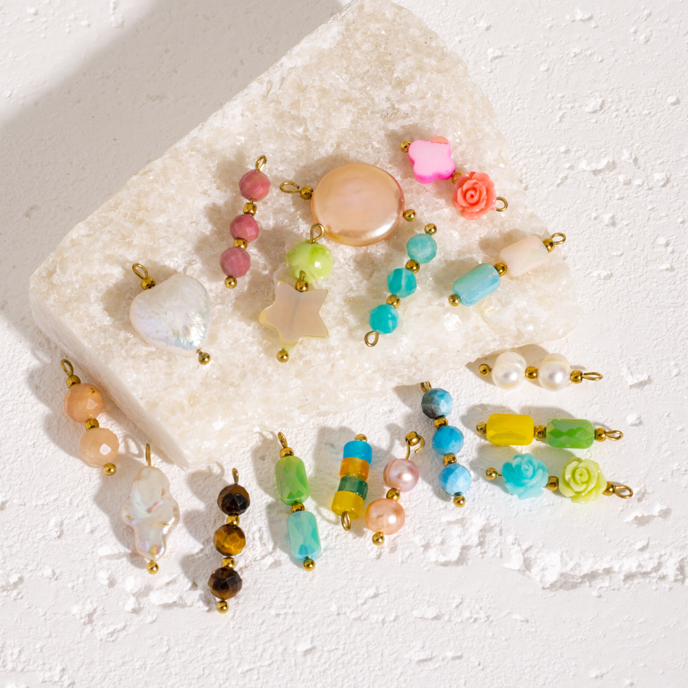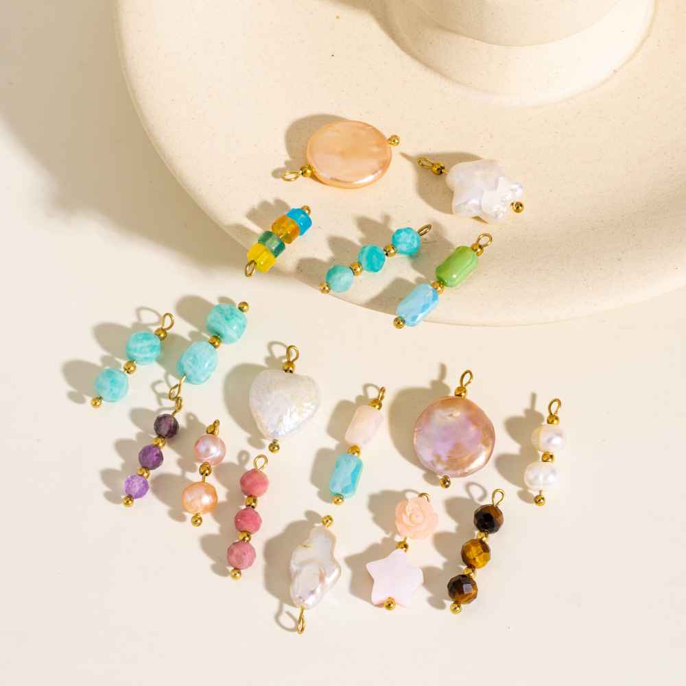 Pendentif bijoux de pierre gemme, avec coquille & perle d'eau douce cultivée & Acier inoxydable 304, Placage ionique sous vide, Forme différente pour le choix & DIY, plus de couleurs à choisir, Vendu par PC