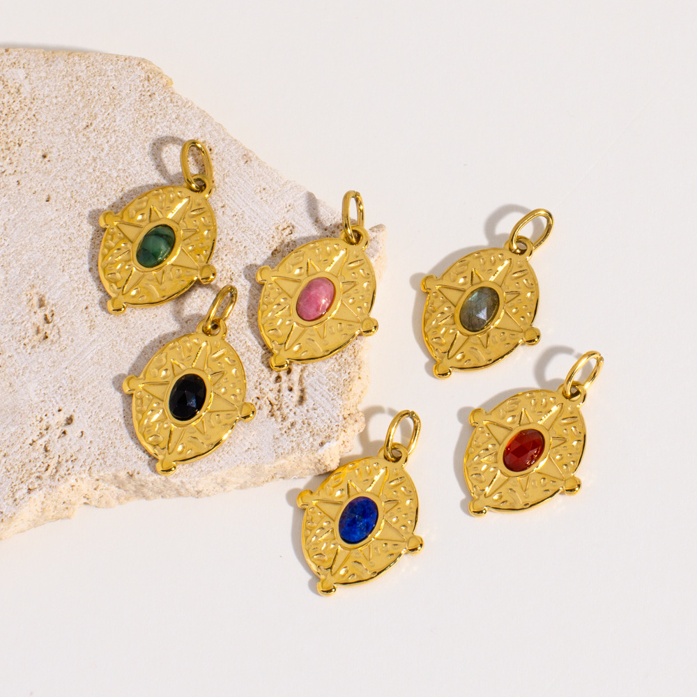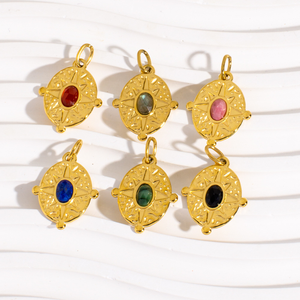 Pendentif bijoux de pierre gemme, Acier inoxydable 304, avec pierre gemme, Placage ionique sous vide, bijoux de mode & pour femme, plus de couleurs à choisir, 8.8x10.8mm, Vendu par PC