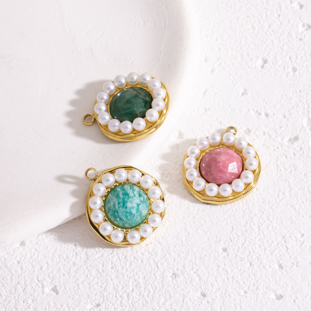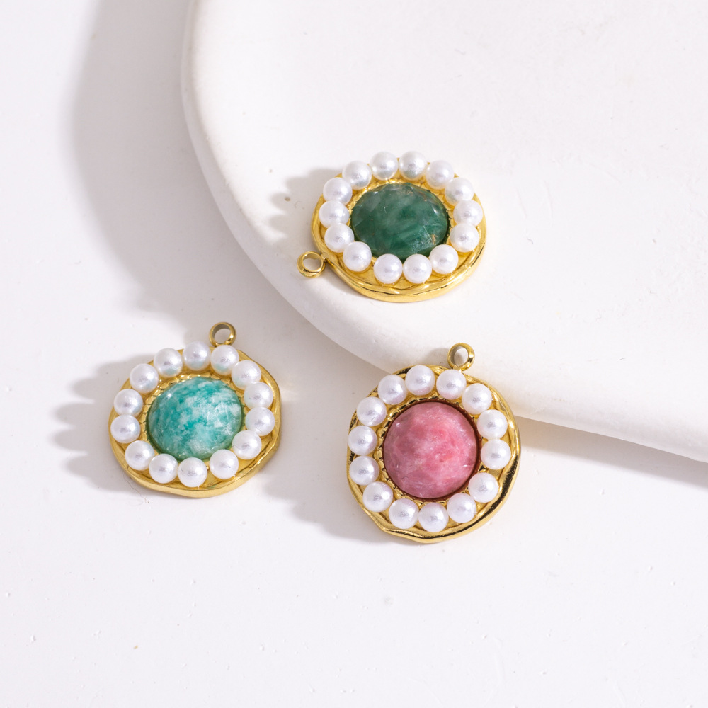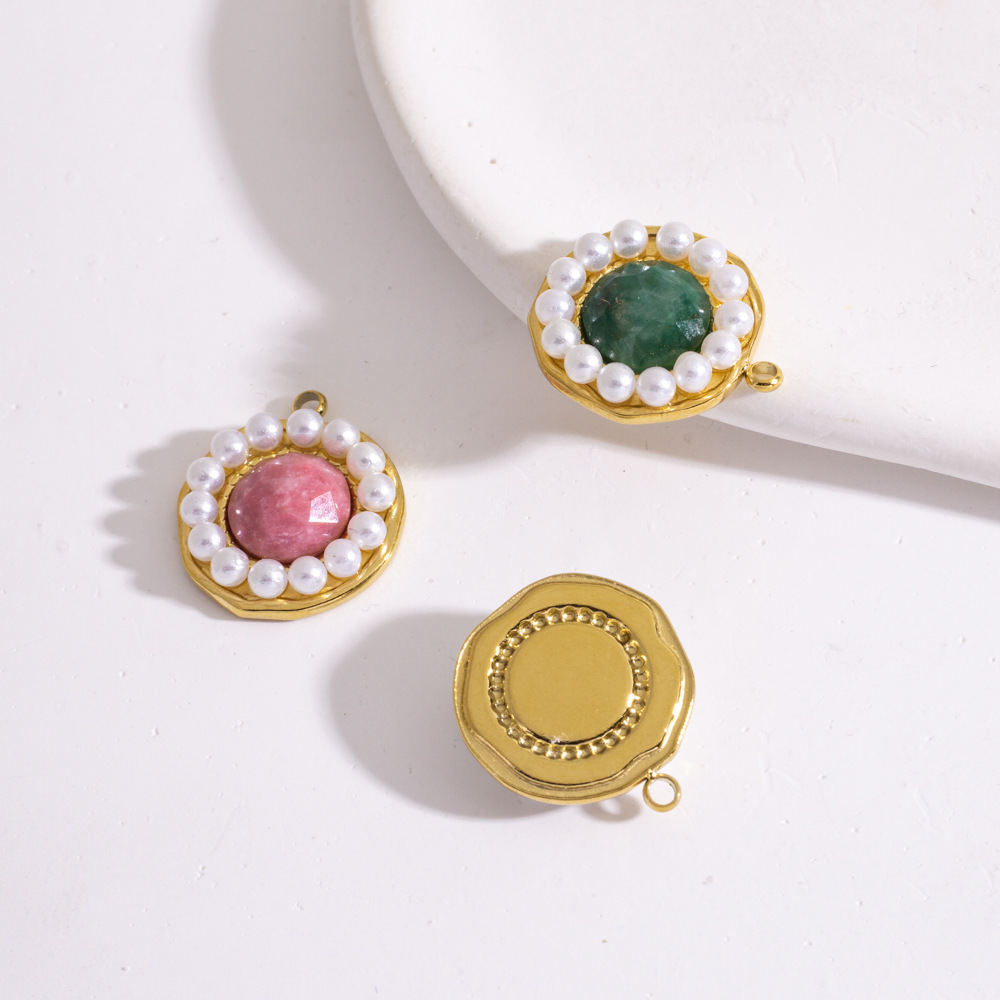 Pendentif bijoux de pierre gemme, Acier inoxydable 304, avec Shell Pearl & pierre gemme, Placage ionique sous vide, DIY, plus de couleurs à choisir, 14.8x16.8mm, 10PC/sac, Vendu par sac