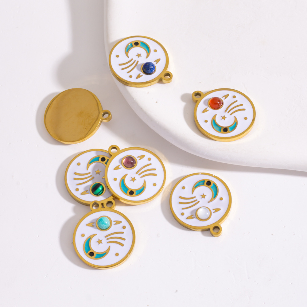 Pendentif bijoux de pierre gemme, Acier inoxydable 304, avec pierre gemme, Placage ionique sous vide, DIY & émail, plus de couleurs à choisir, 15x17.3mm, 10PC/sac, Vendu par sac