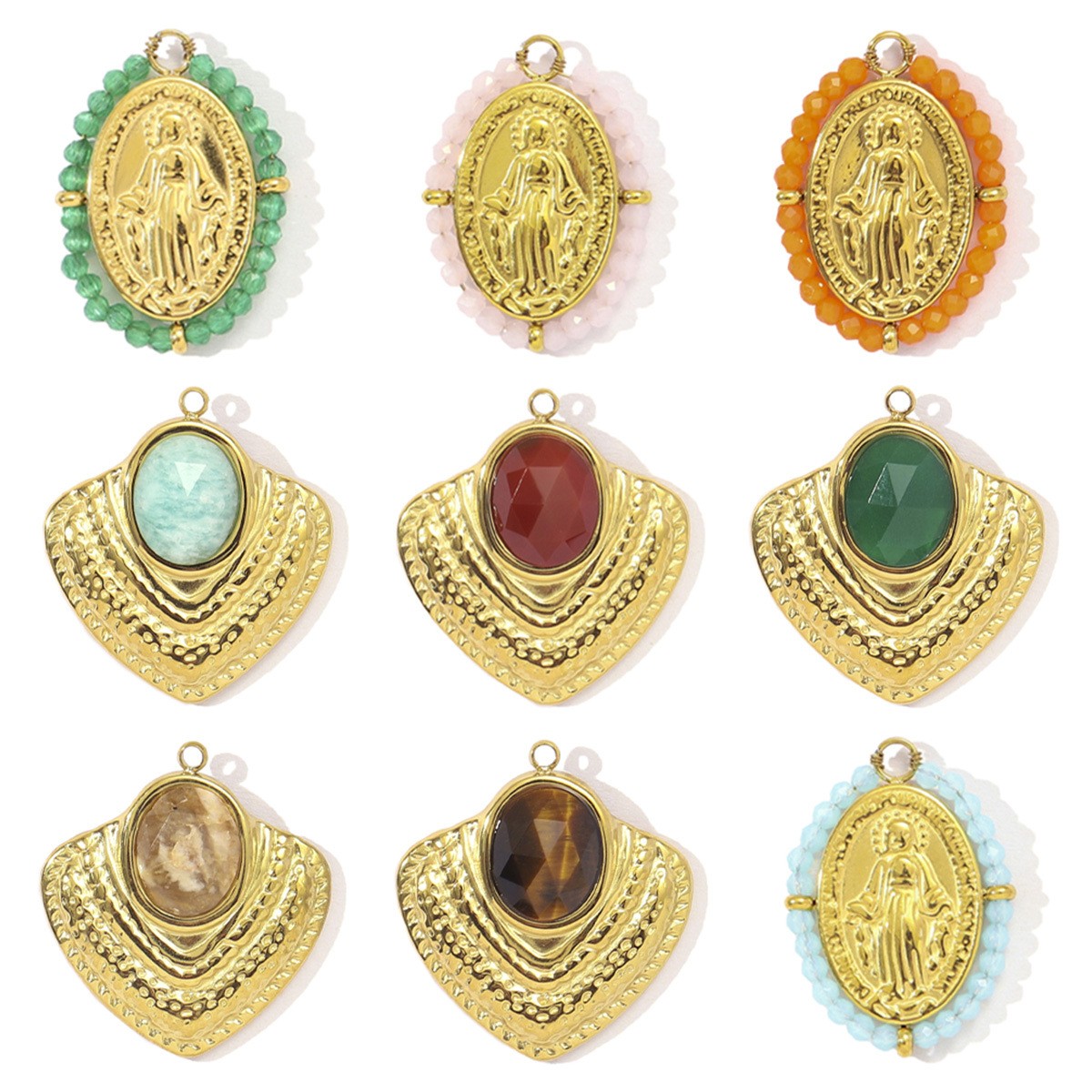 Pendentif bijoux de pierre gemme, Acier inoxydable 304, avec pierre gemme, Placage ionique sous vide, Forme différente pour le choix & DIY, plus de couleurs à choisir, 3PC/sac, Vendu par sac