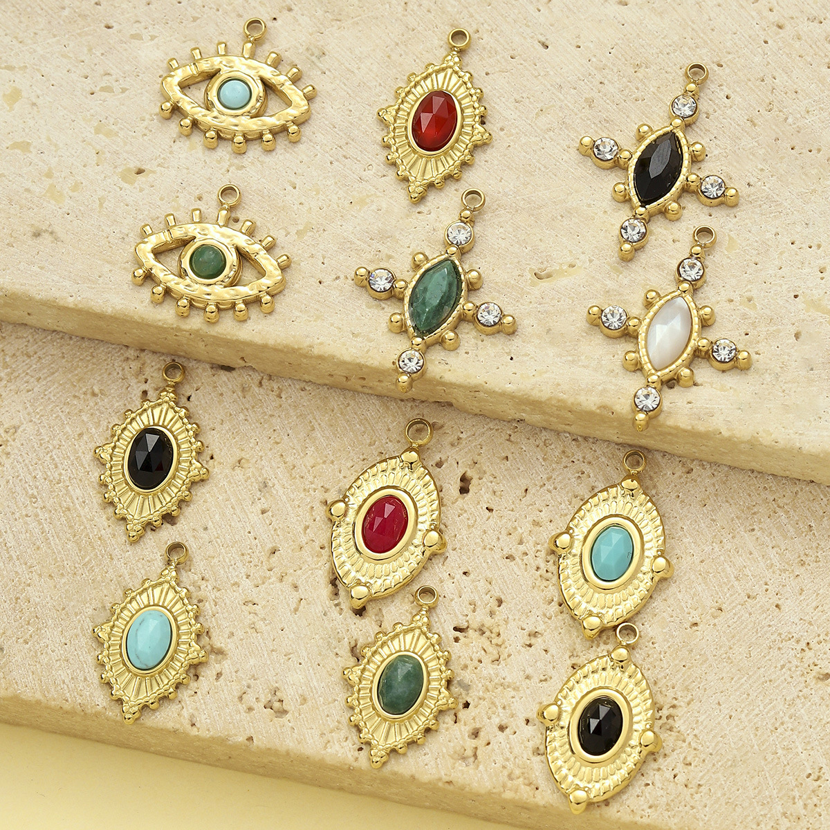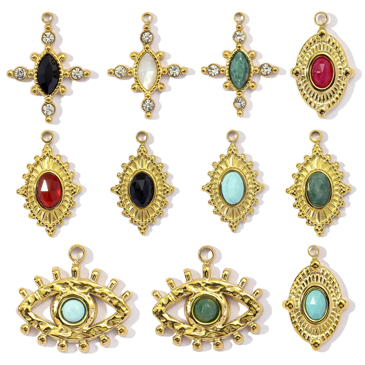 Pendentif bijoux de pierre gemme, Acier inoxydable 304, avec pierre gemme, Placage ionique sous vide, Forme différente pour le choix & DIY & avec strass, plus de couleurs à choisir, 3PC/sac, Vendu par sac