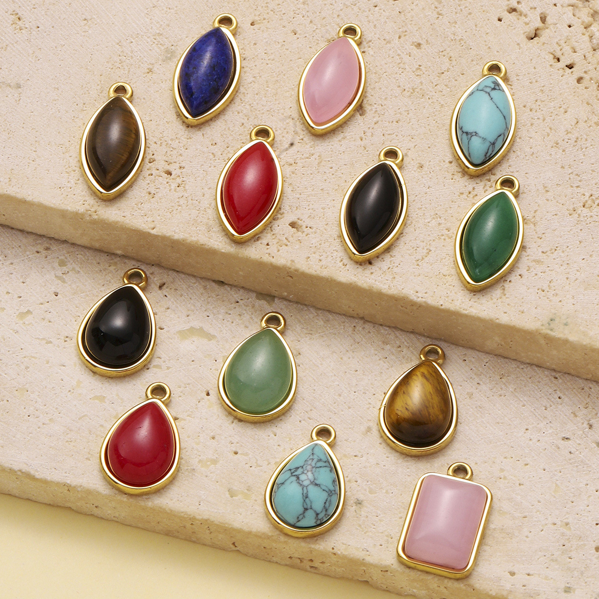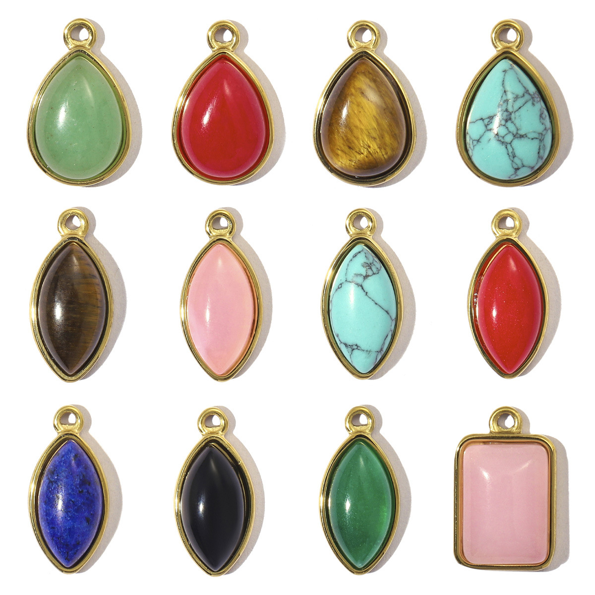 Pendentif bijoux de pierre gemme, Acier inoxydable 304, avec pierre gemme, Placage ionique sous vide, Forme différente pour le choix & DIY, plus de couleurs à choisir, 5PC/sac, Vendu par sac