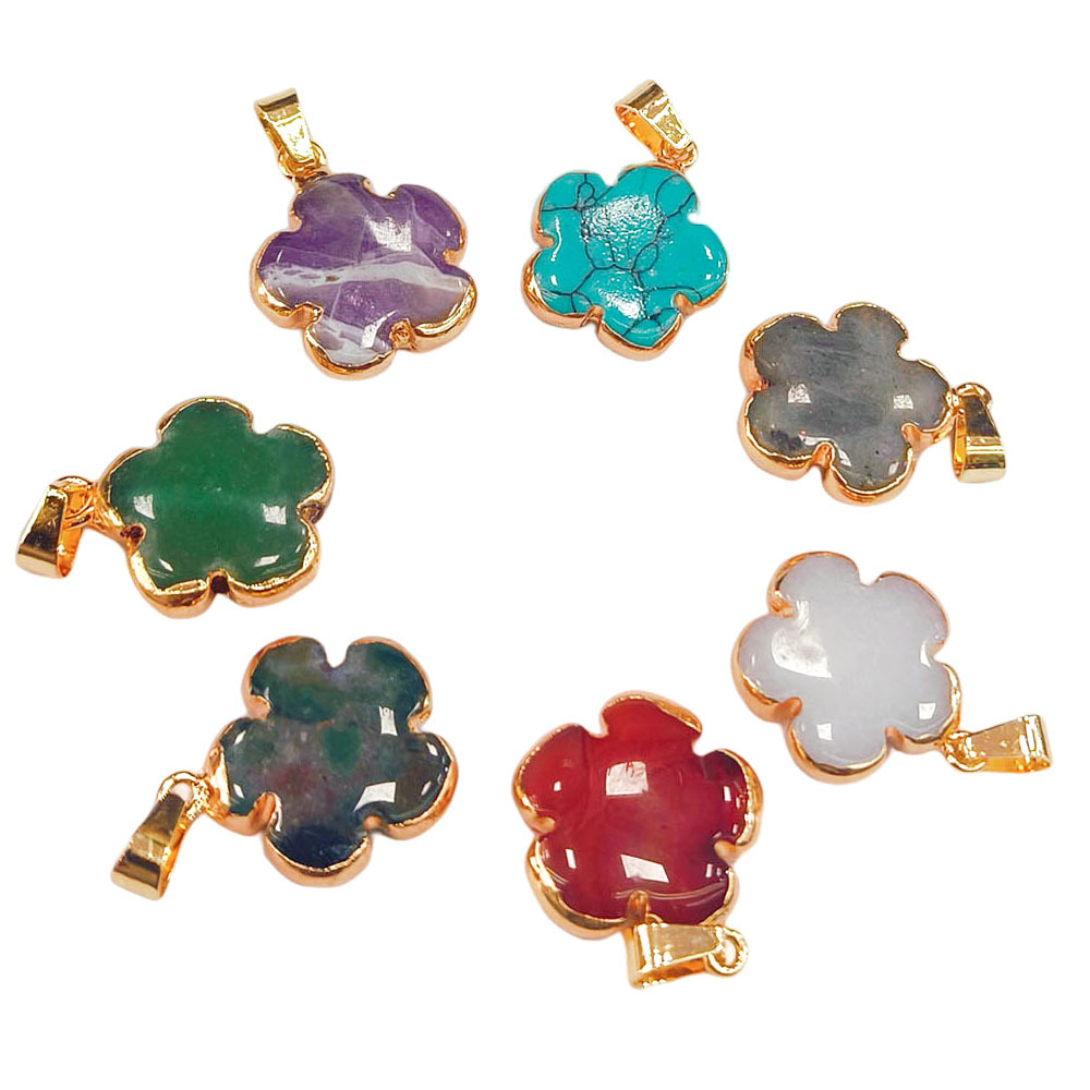 Pendentif bijoux de pierre gemme, Pierre naturelle, avec laiton, fleur, DIY & différents matériaux pour le choix, plus de couleurs à choisir, 20mm, Vendu par PC