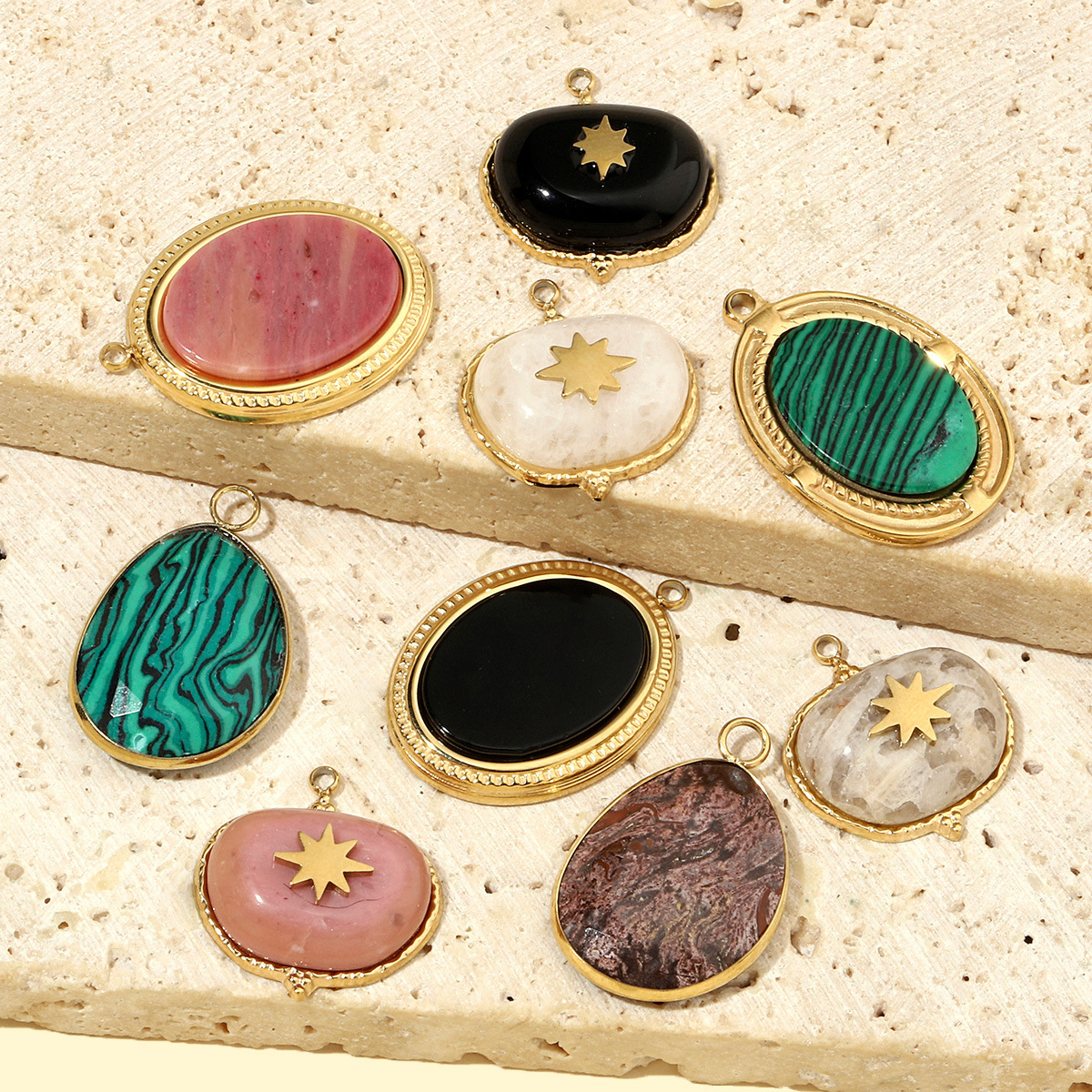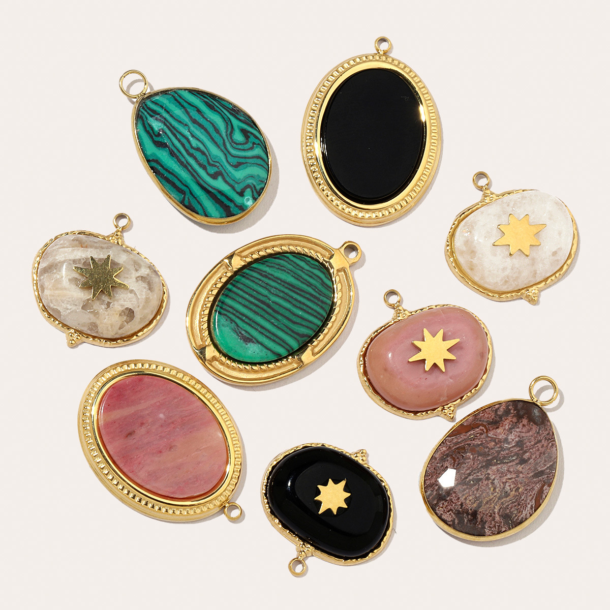 Pendentif bijoux de pierre gemme, Acier inoxydable 304, avec pierre gemme, Placage ionique sous vide, Forme différente pour le choix & DIY, plus de couleurs à choisir, Vendu par PC