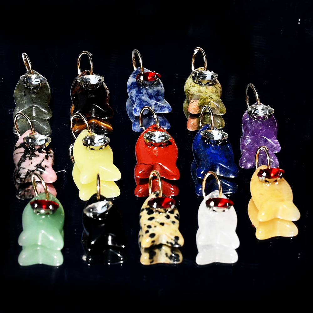 Pendentif bijoux de pierre gemme, Pierre naturelle, poisson, DIY & différents matériaux pour le choix & avec strass, plus de couleurs à choisir, 22x12x6mm, Vendu par PC
