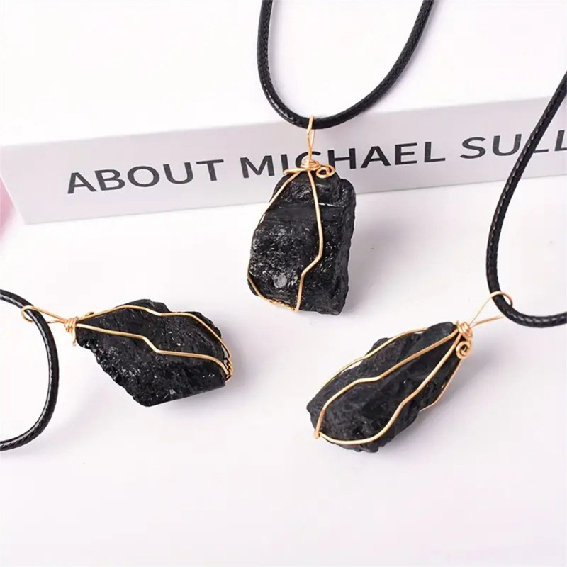 Pendentif bijoux de pierre gemme, Schorl, DIY, noire, Vendu par PC