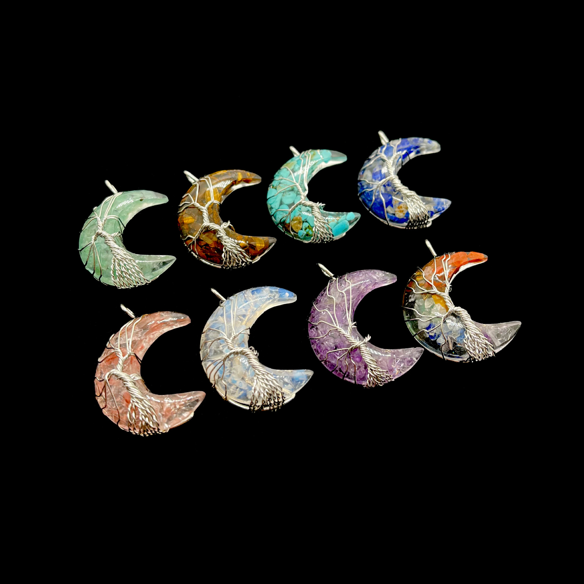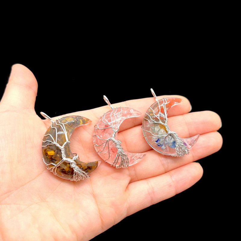 Pendentif bijoux de pierre gemme, Pierre naturelle, avec résine, lune, DIY & différents matériaux pour le choix, plus de couleurs à choisir, 31x36x15mm, Vendu par PC