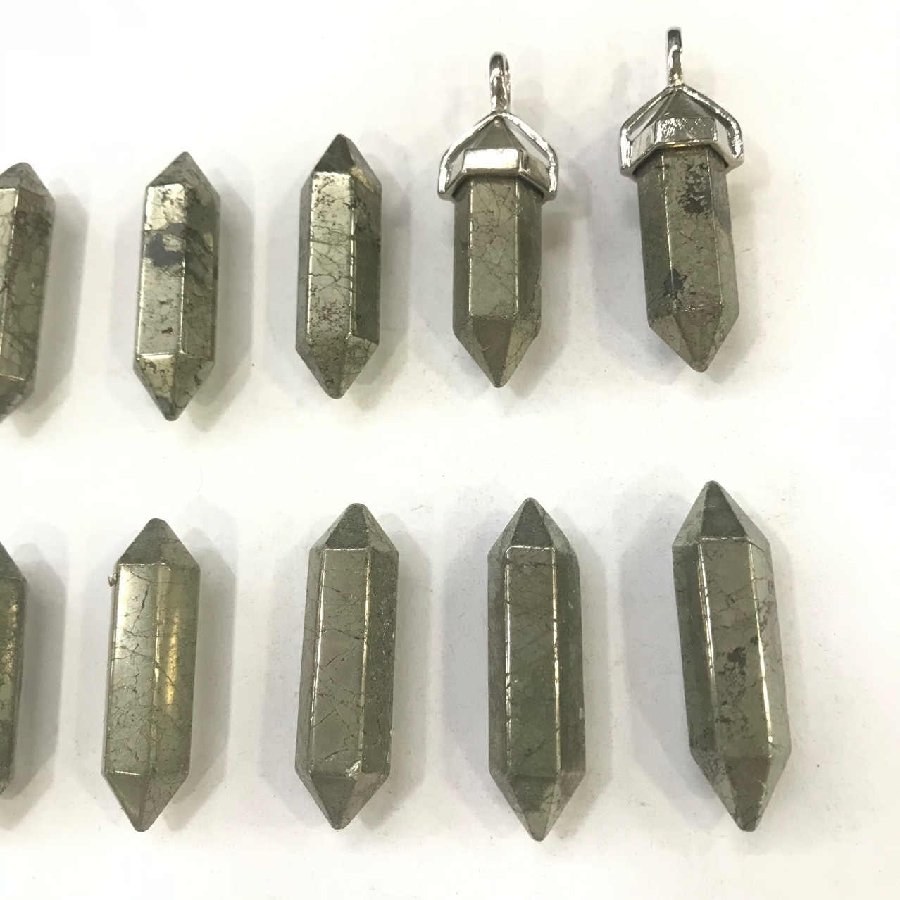 Pendentif bijoux de pierre gemme, Pyrite dorée, DIY, 8x32mm, Vendu par PC