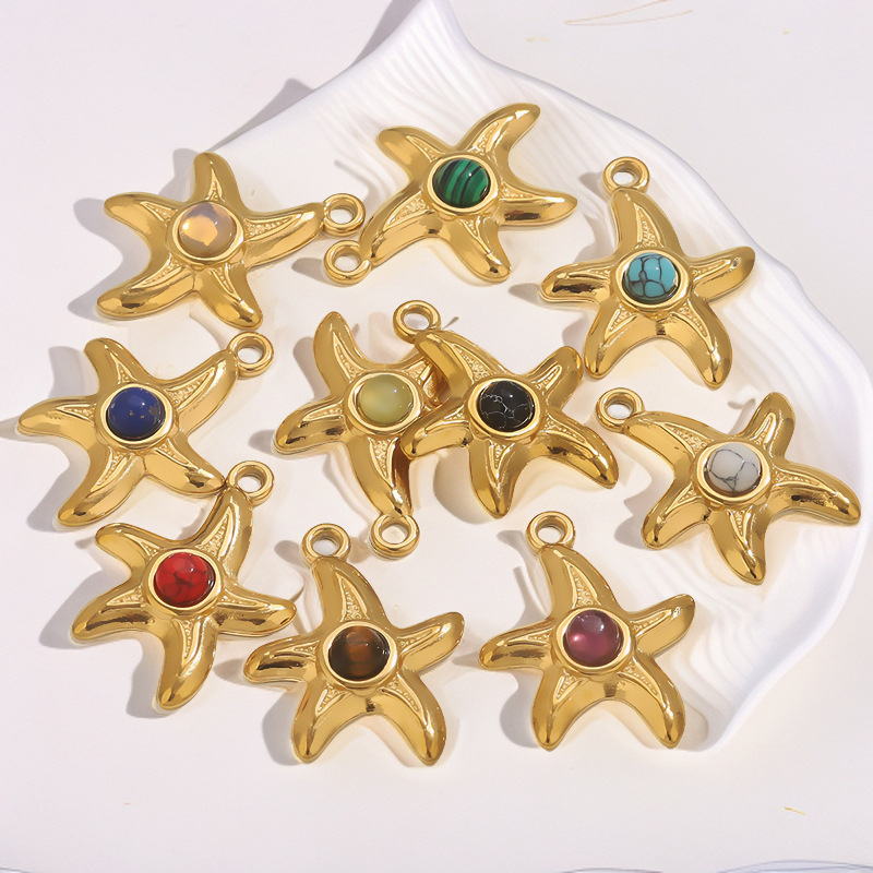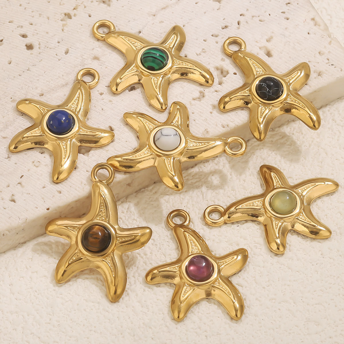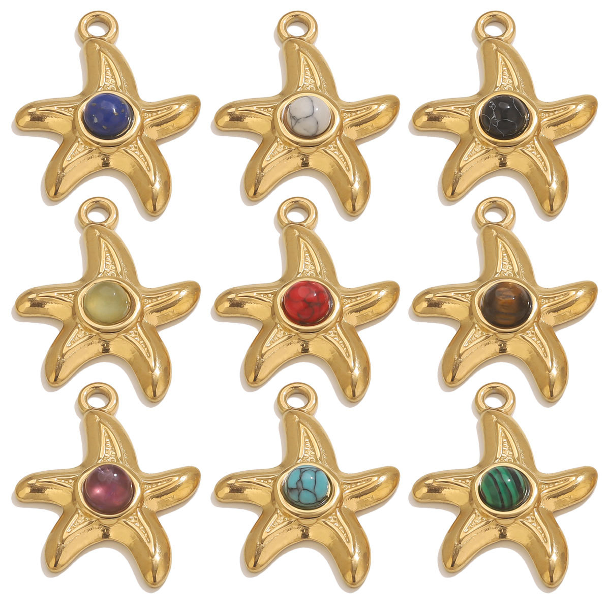 Pendentif bijoux de pierre gemme, Acier inoxydable 304, avec Pierre naturelle, étoile de mer, Placage de couleur d'or, DIY & différents matériaux pour le choix, Vendu par PC