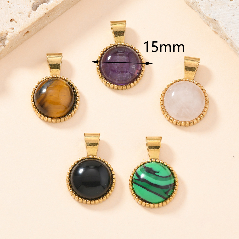 Pendentif bijoux de pierre gemme, Acier inoxydable 304, avec Pierre naturelle, Rond, Placage de couleur d'or, DIY & différents matériaux pour le choix, plus de couleurs à choisir, Vendu par PC