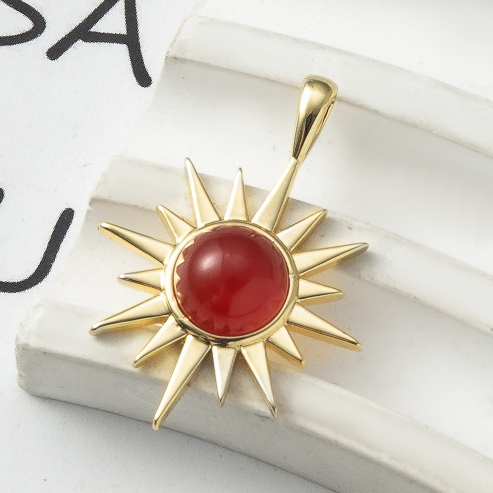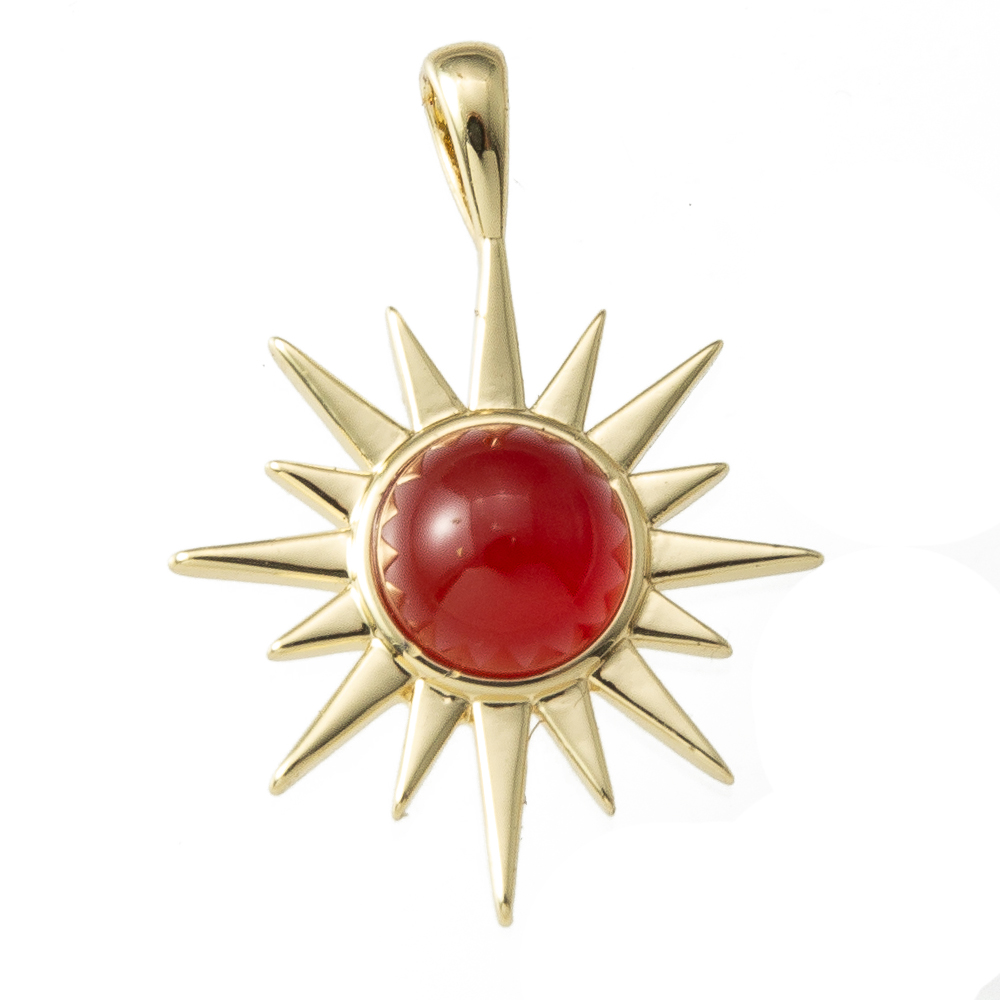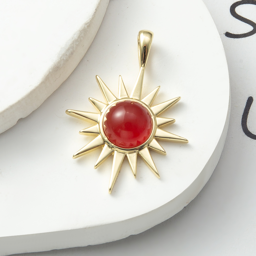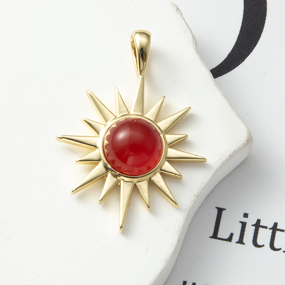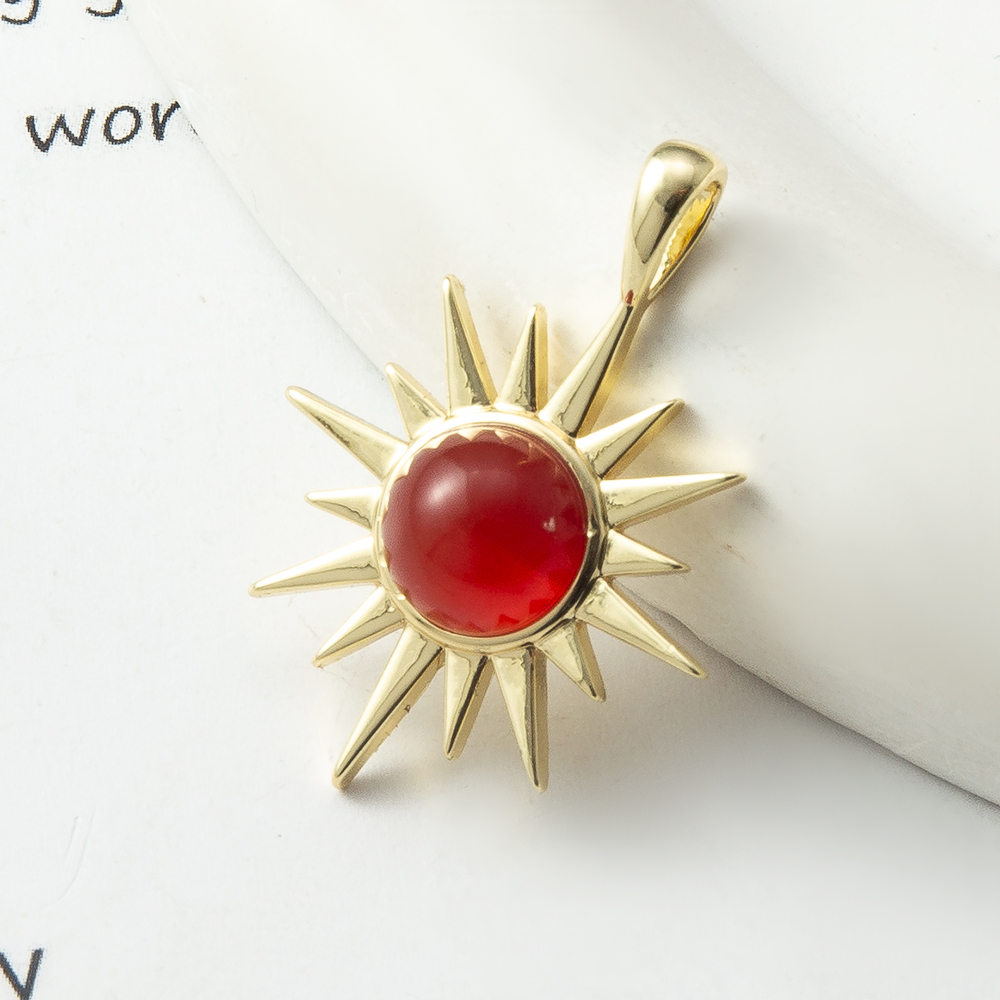Pendentif bijoux de pierre gemme, laiton, avec pierre gemme, soleil, Placage, bijoux de mode, rouge, protéger l'environnement, sans nickel, plomb et cadmium, 20.6x6x28.8mm, Vendu par PC