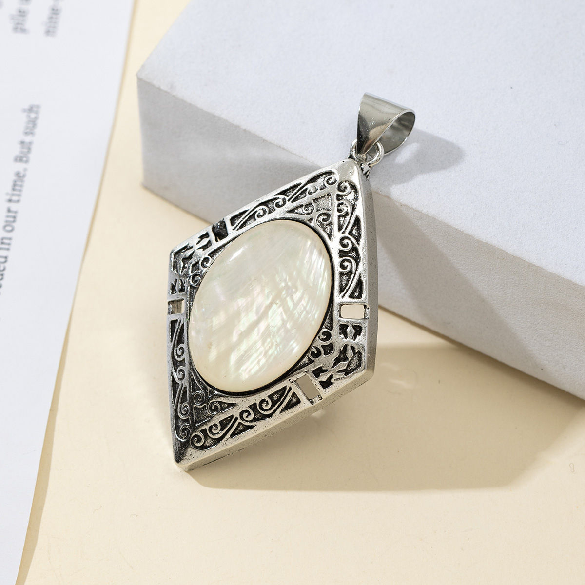 Pendentif bijoux de pierre gemme, Acier inoxydable 304, avec pierre gemme & coquille, Losange, Placage, DIY, plus de couleurs à choisir, Vendu par PC