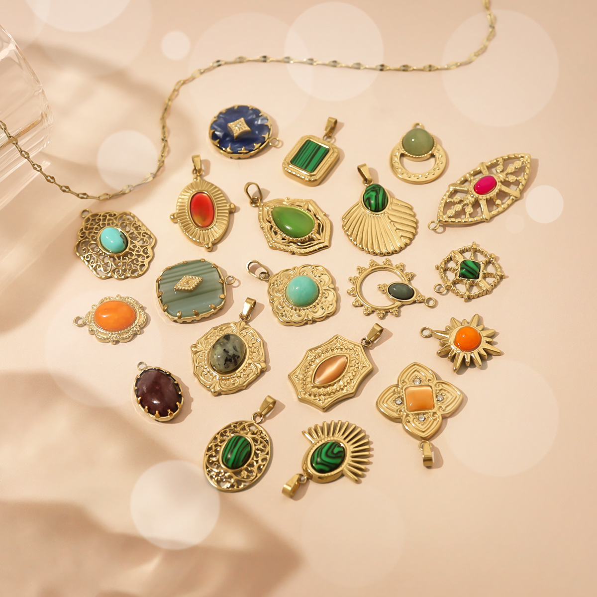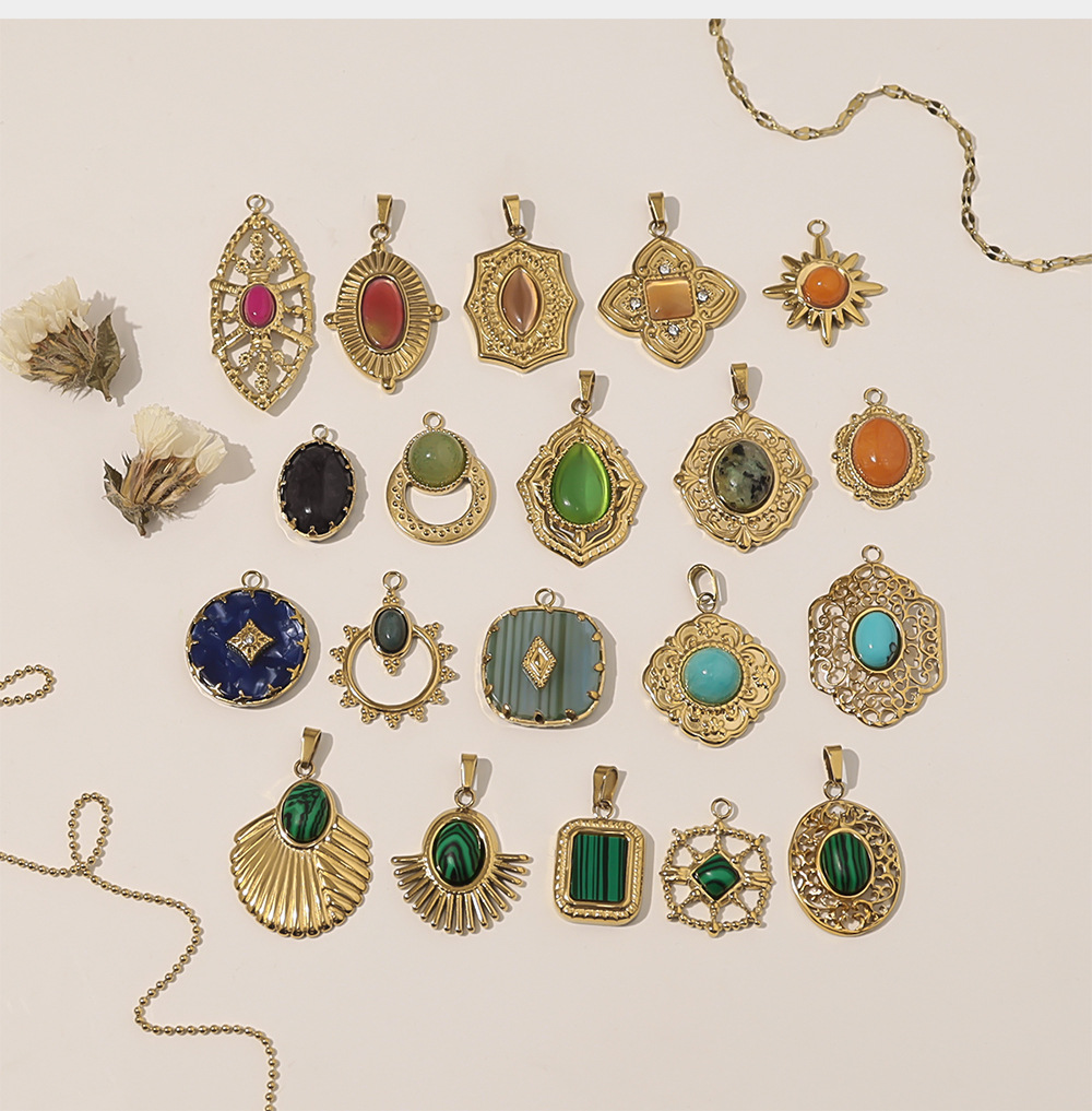 Pendentif bijoux de pierre gemme, Acier inoxydable 304, avec Pierre naturelle, Plaqué or 18K, DIY & styles différents pour le choix, Vendu par PC