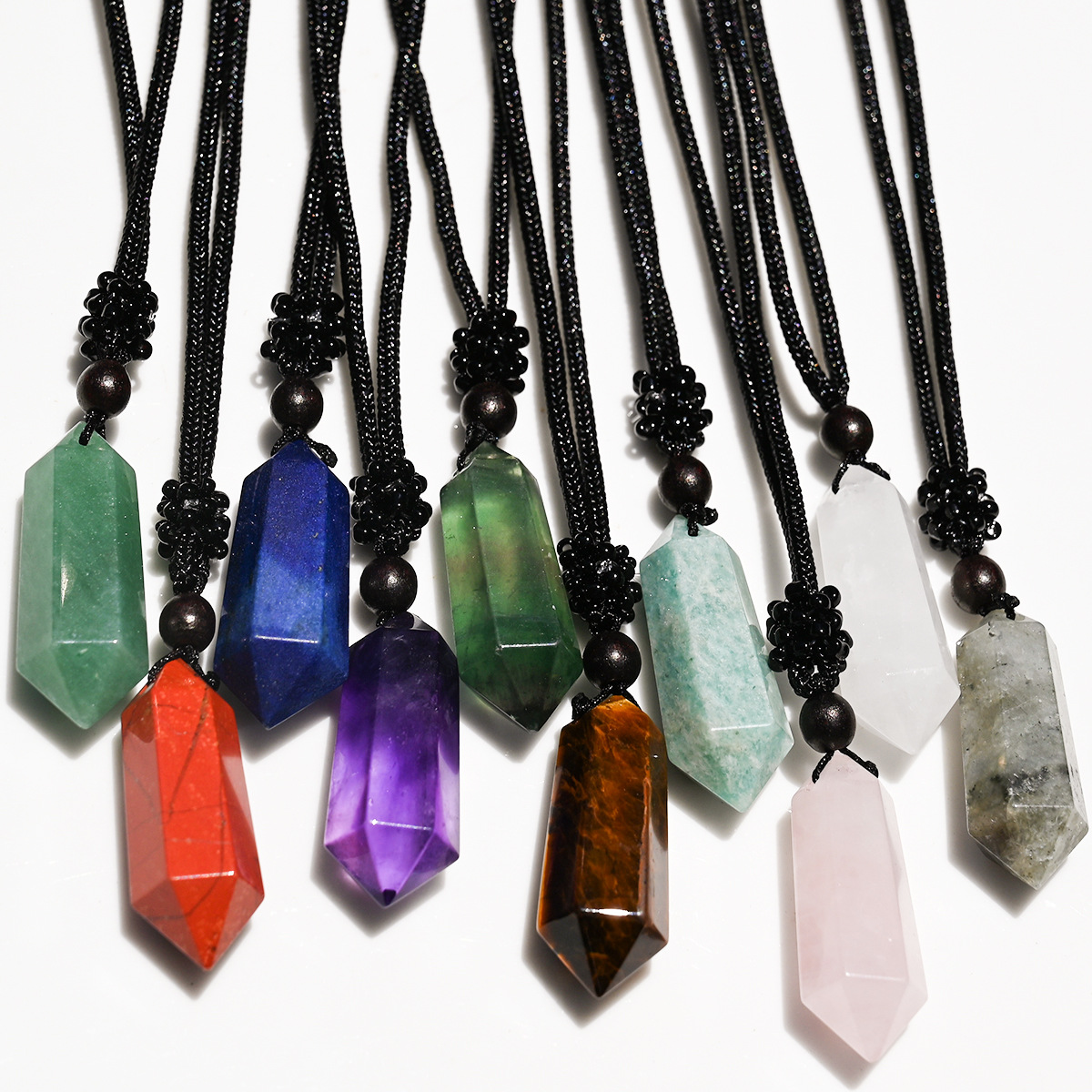 Pendentif bijoux de pierre gemme, avec Pierre naturelle, Placage de couleur d'or, DIY, plus de couleurs à choisir, 12x38mm, Longueur:32 cm, Vendu par PC