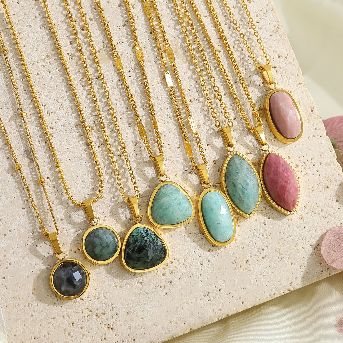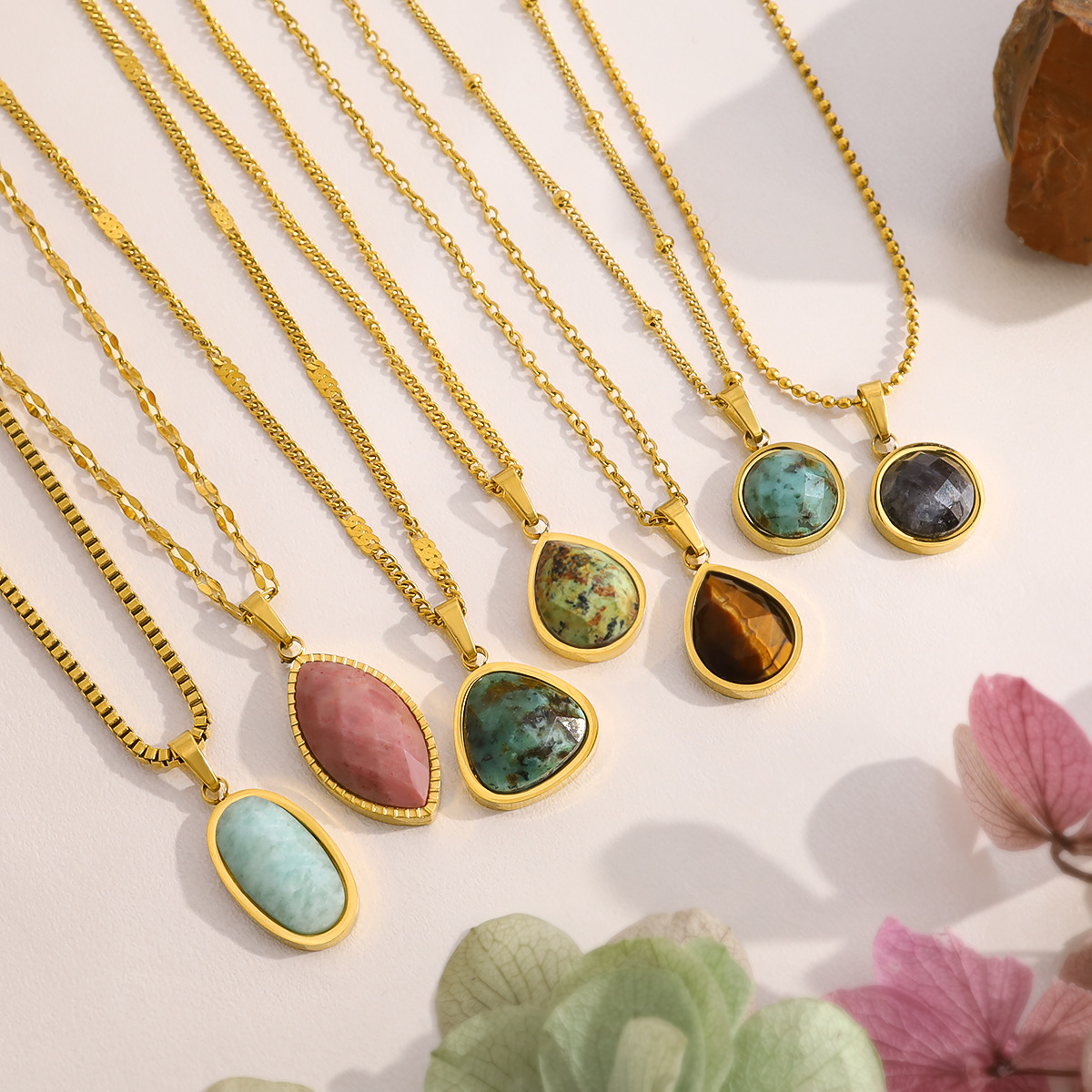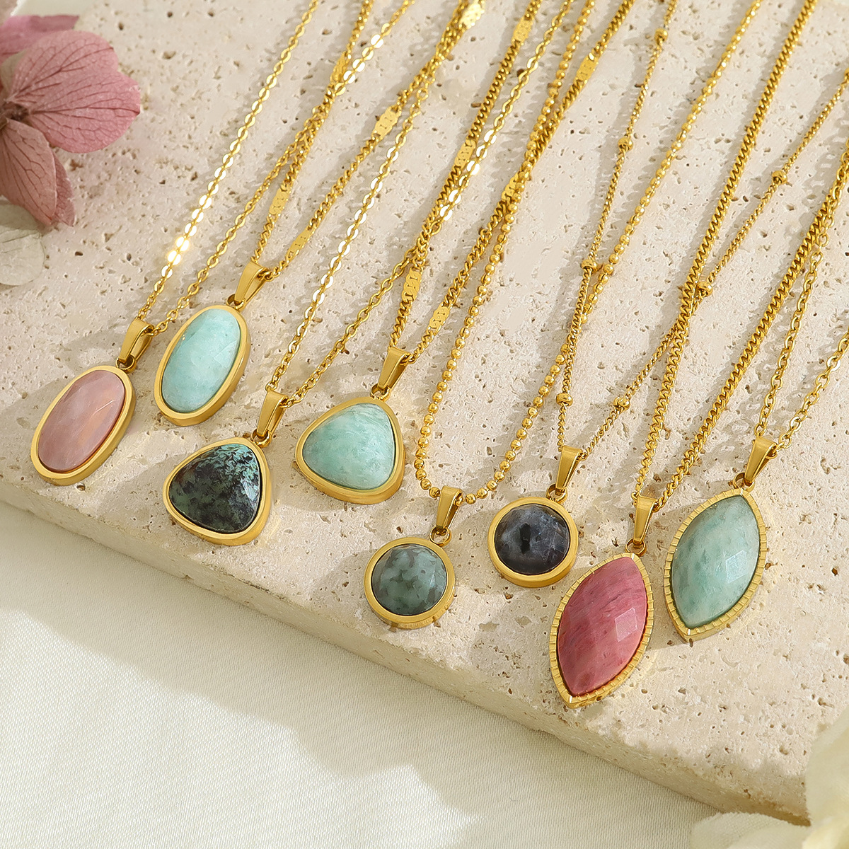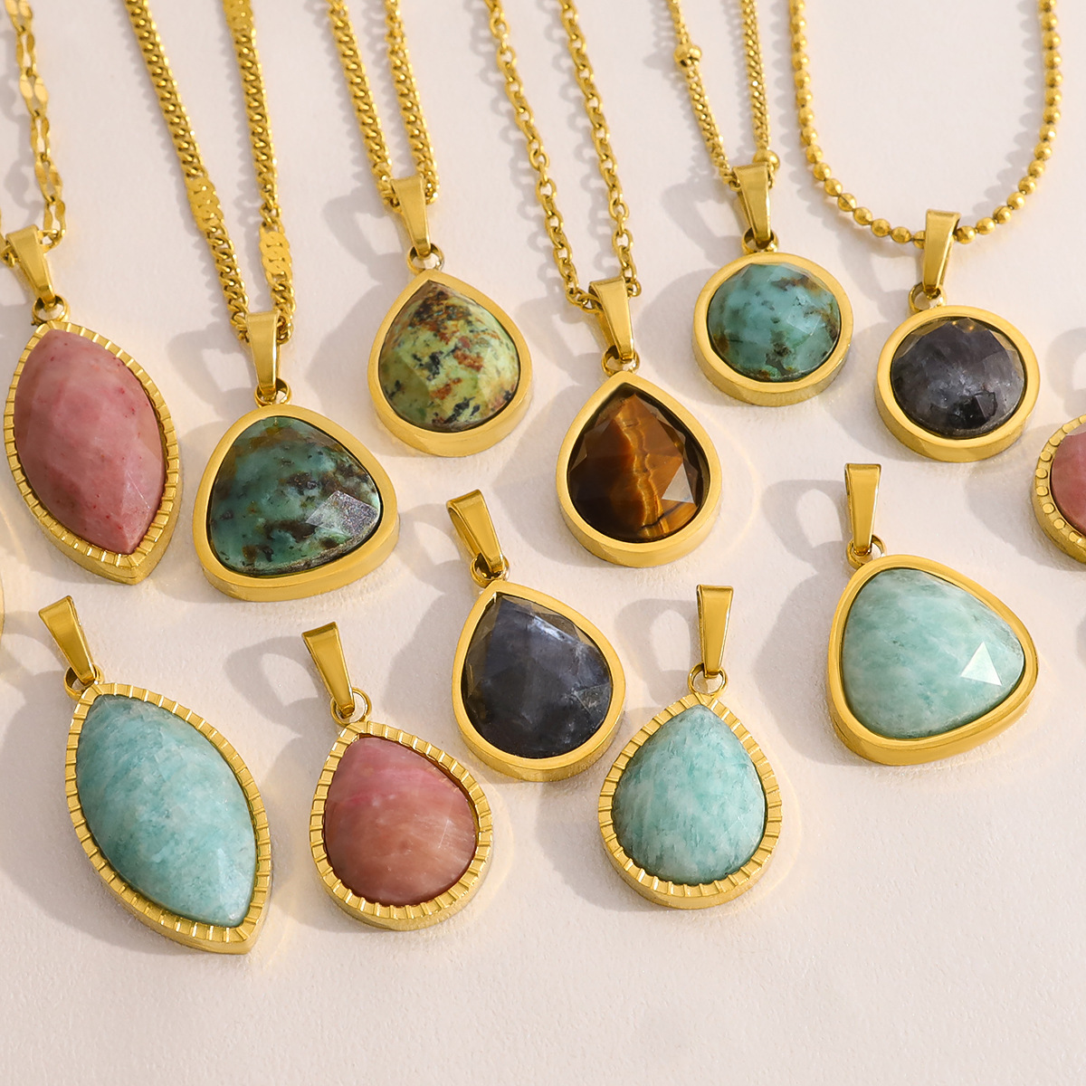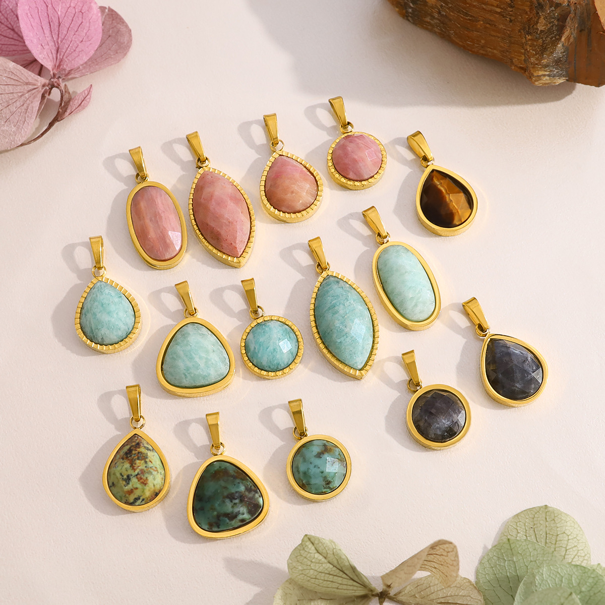 Pendentif bijoux de pierre gemme, Acier inoxydable 304, avec Pierre naturelle, Plaqué or 18K, DIY & différents matériaux pour le choix & styles différents pour le choix, Vendu par PC
