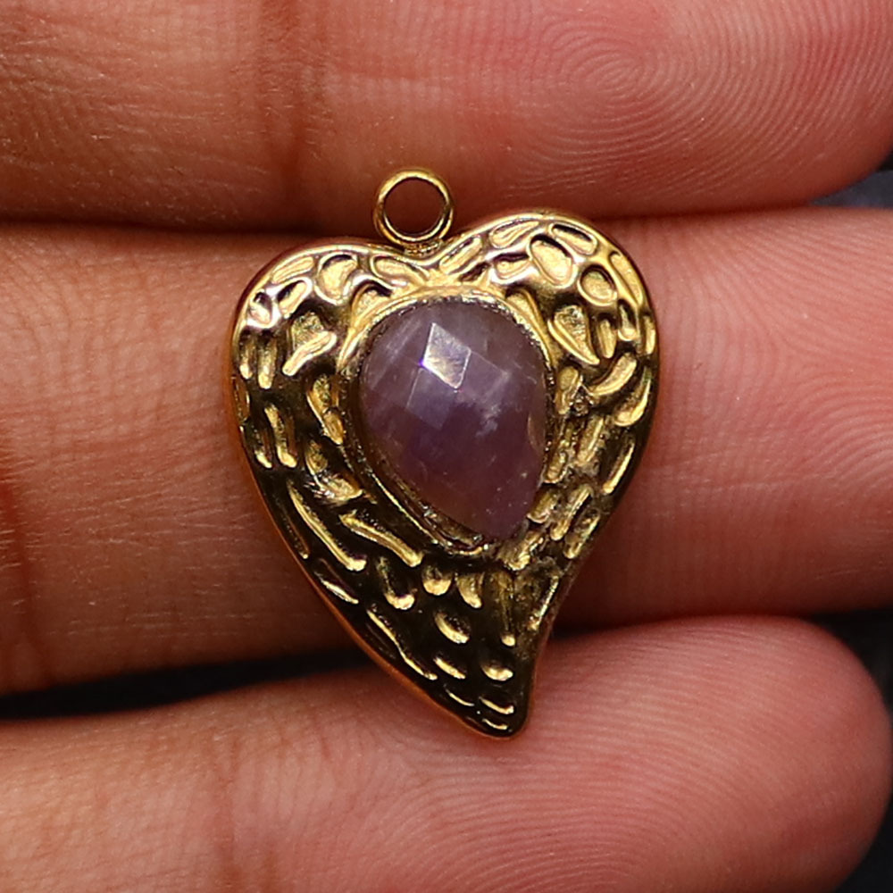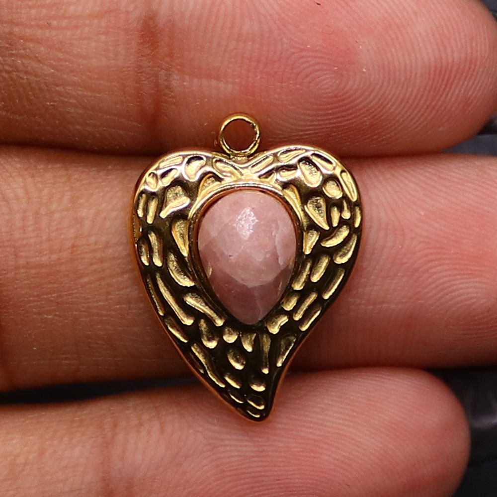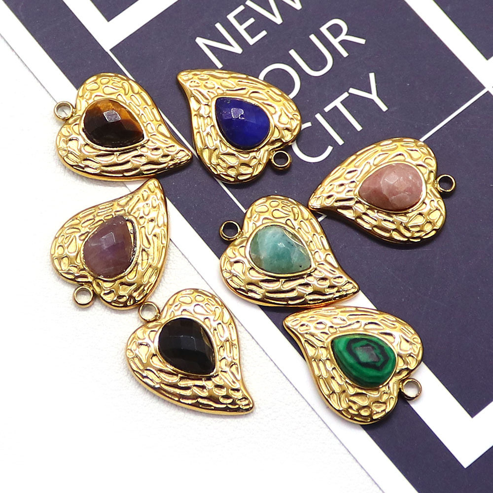 Pendentif bijoux de pierre gemme, Acier inoxydable 304, avec Pierre naturelle, coeur, Placage de couleur d'or, DIY, plus de couleurs à choisir, 15x20mm, Vendu par PC