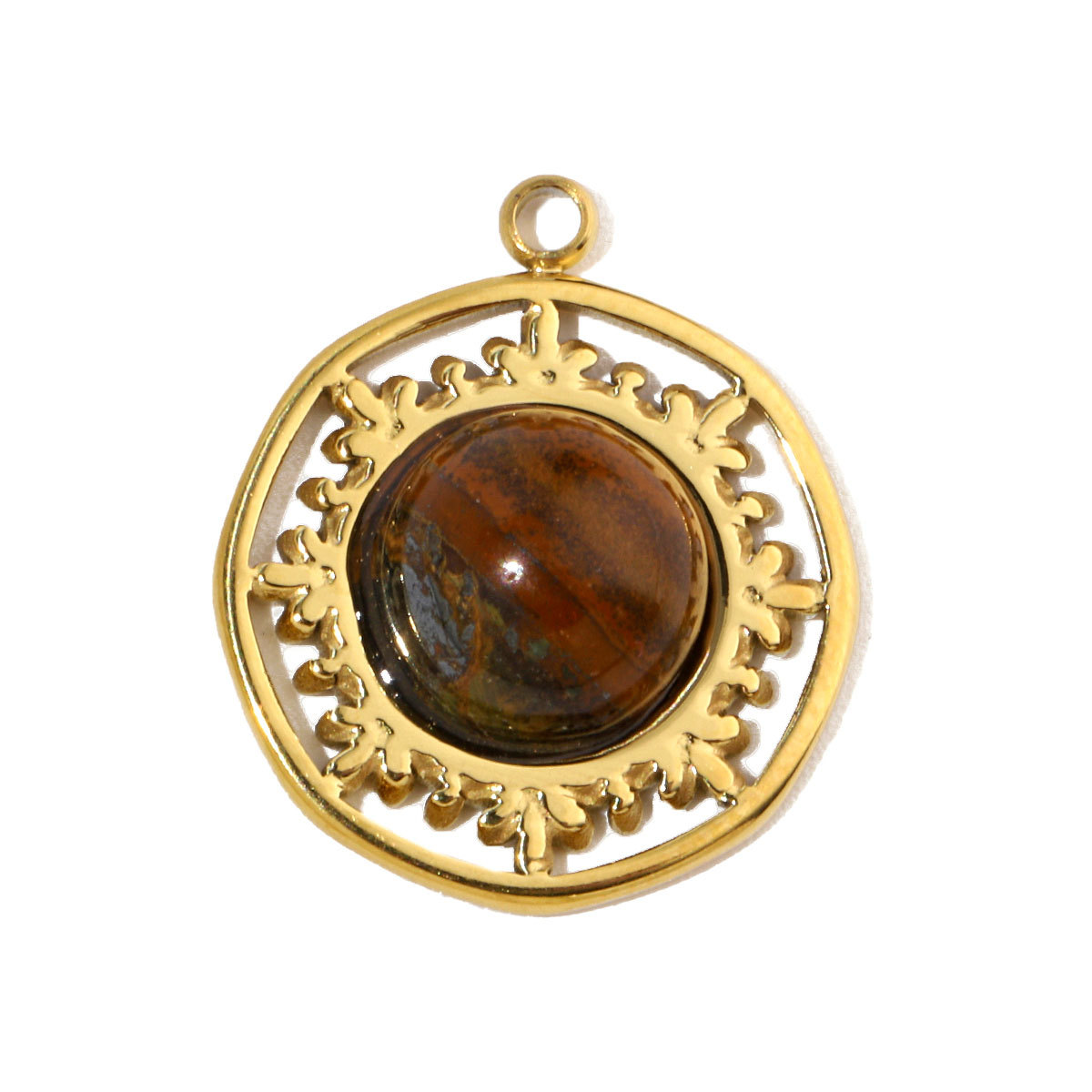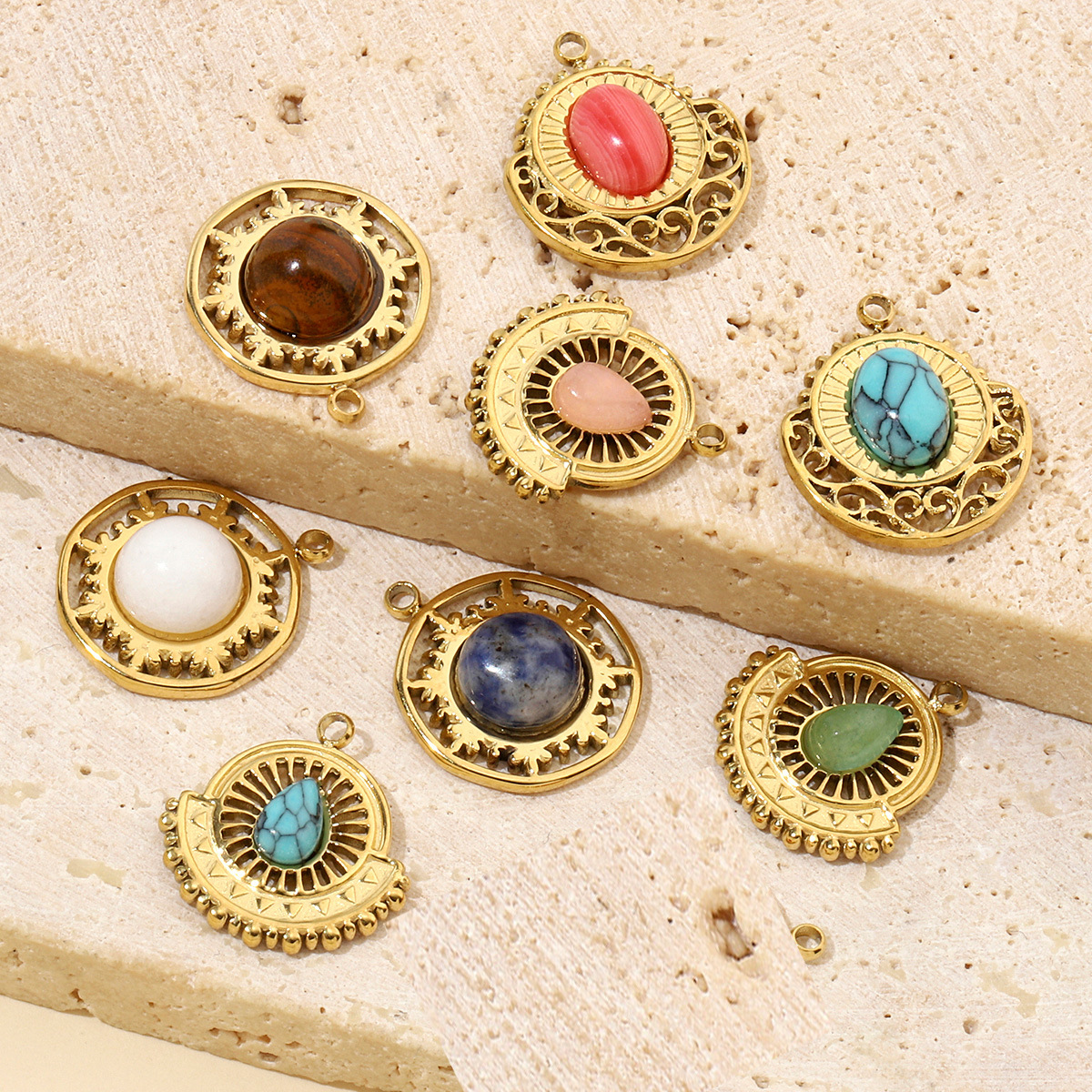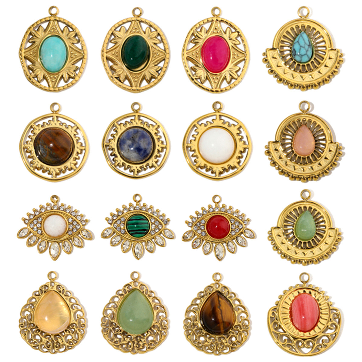 Pendentif bijoux de pierre gemme, Acier inoxydable 304, avec Pierre naturelle, Placage de couleur d'or, DIY, plus de couleurs à choisir, 3PC/sac, Vendu par sac