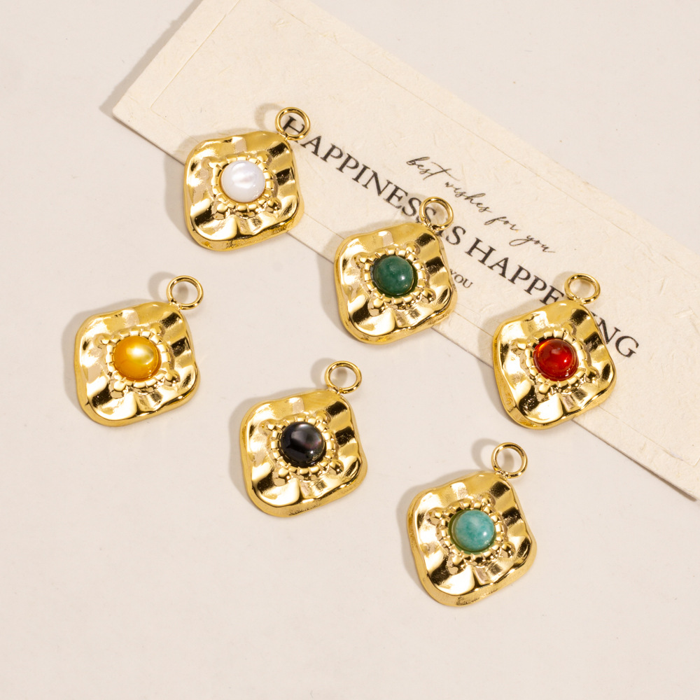 Pendentif bijoux de pierre gemme, Acier inoxydable 304, avec Pierre naturelle & jade Africain & agate rouge & coquille noire & coquille blanche, Placage de couleur d'or, DIY, plus de couleurs à choisir, Vendu par PC