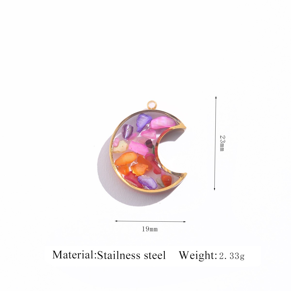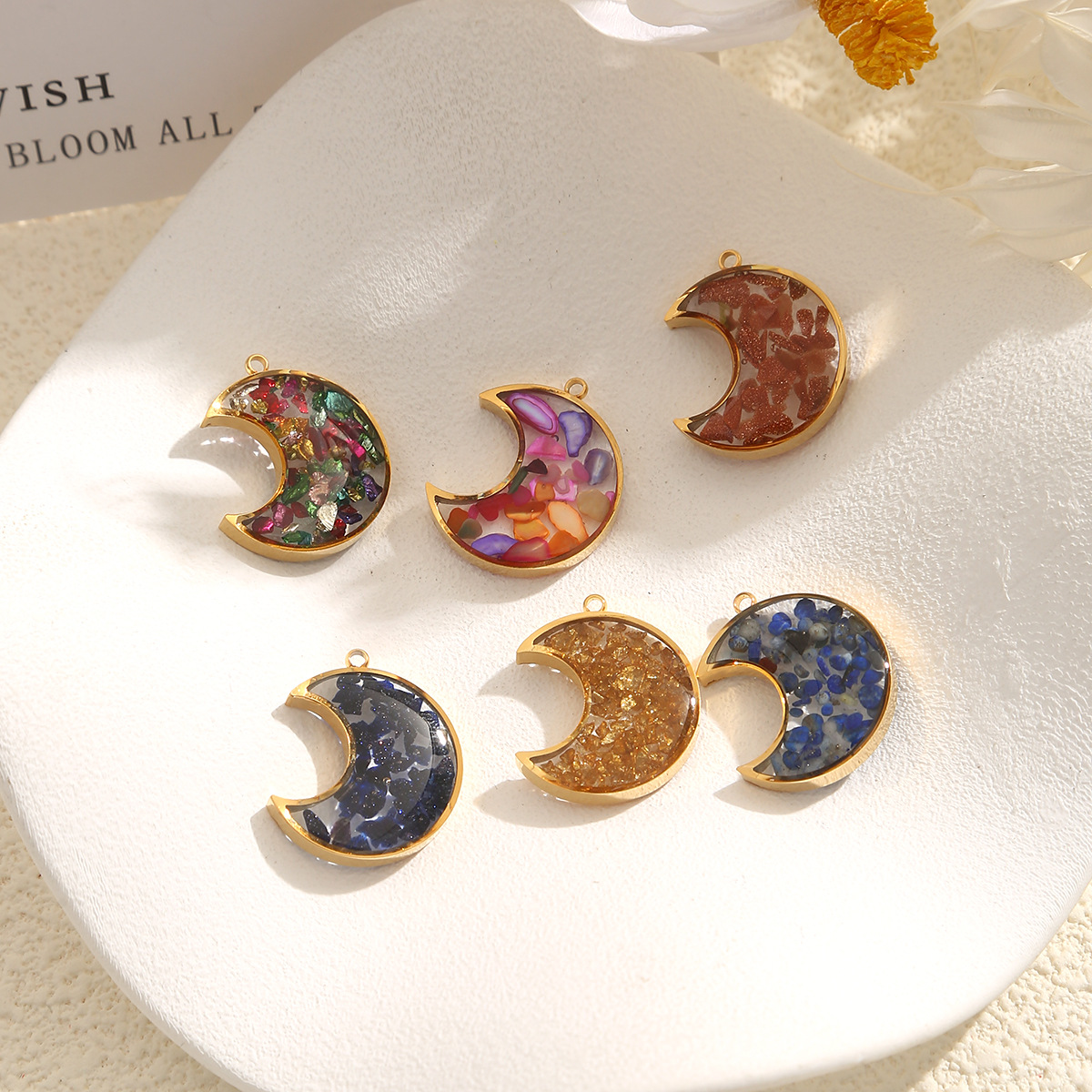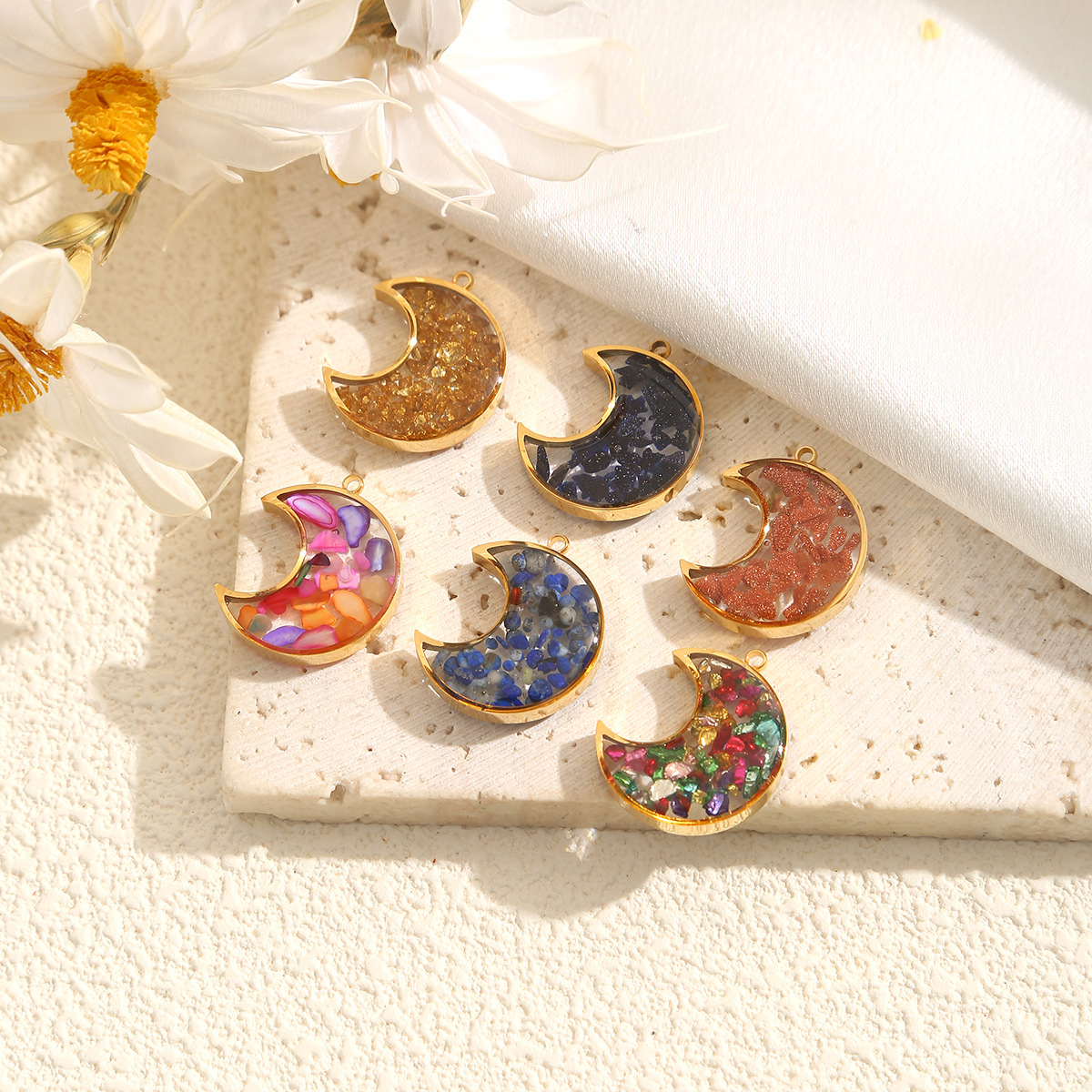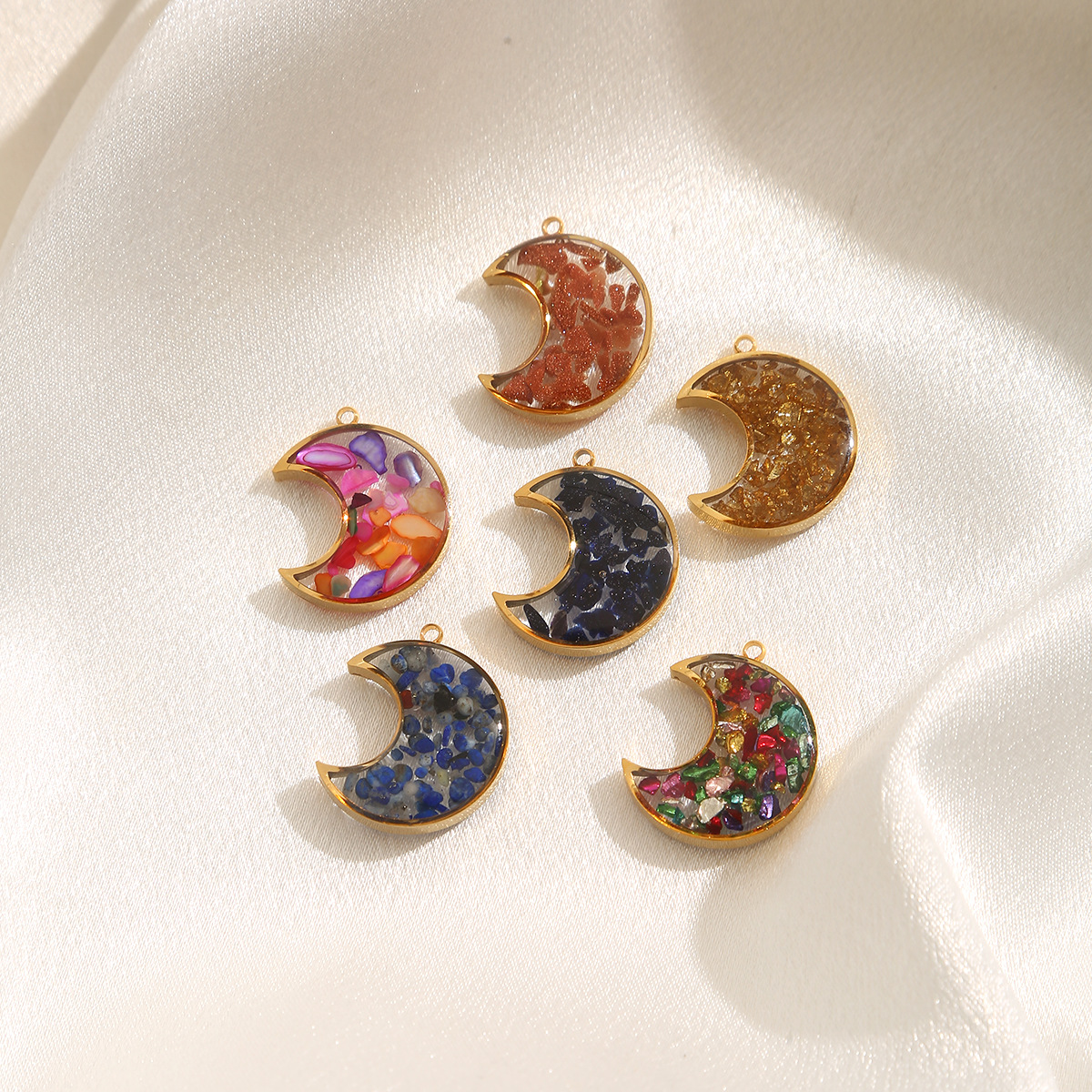 Pendentif bijoux de pierre gemme, Acier inoxydable 304, avec Gravier naturel, lune, Placage, DIY & autocollant époxyde, plus de couleurs à choisir, 3PC/sac, Vendu par sac