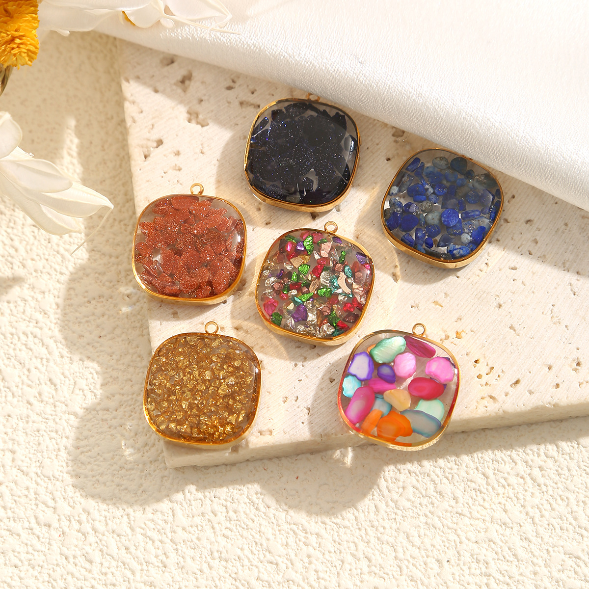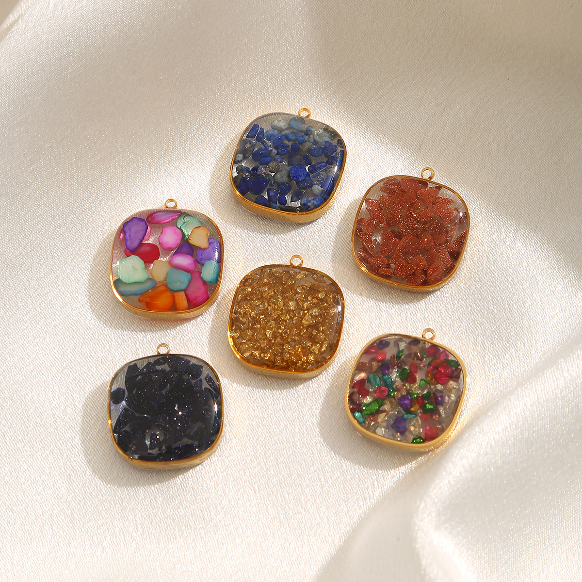Pendentif bijoux de pierre gemme, Acier inoxydable 304, avec Gravier naturel & Feuille d'or, cadre, Placage, DIY & autocollant époxyde, plus de couleurs à choisir, 3PC/sac, Vendu par sac