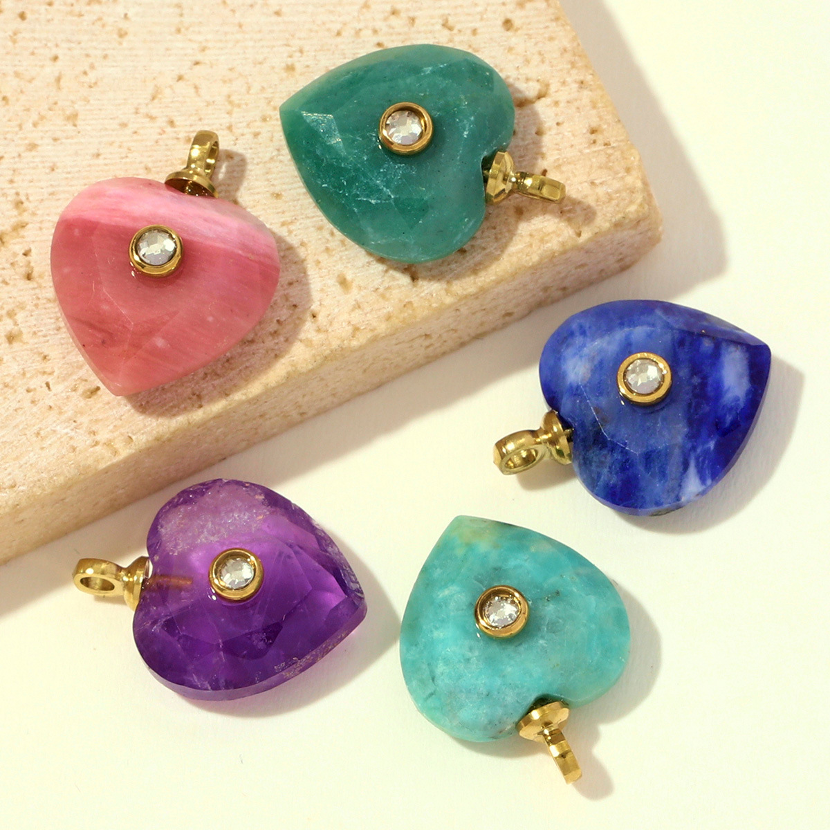 Pendentif bijoux de pierre gemme, coeur, DIY & modèles différents pour le choix, plus de couleurs à choisir, Vendu par PC