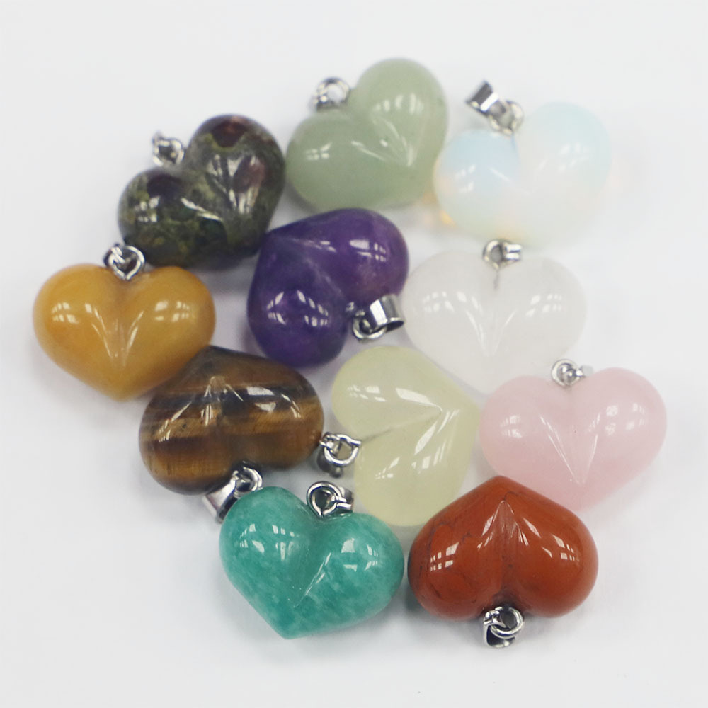 Pendentif bijoux de pierre gemme, coeur, poli, DIY & différents matériaux pour le choix, 20x15x12mm, Vendu par PC