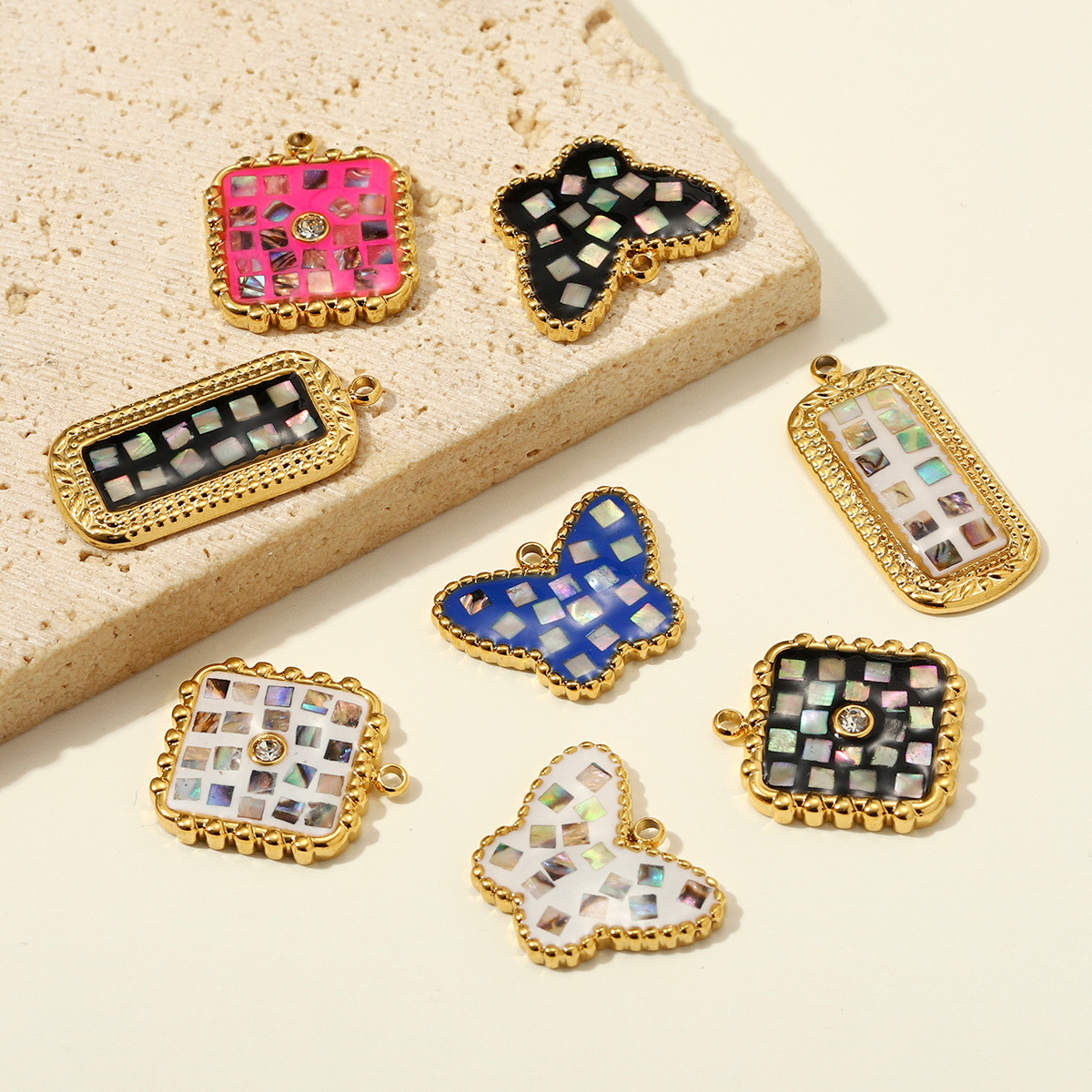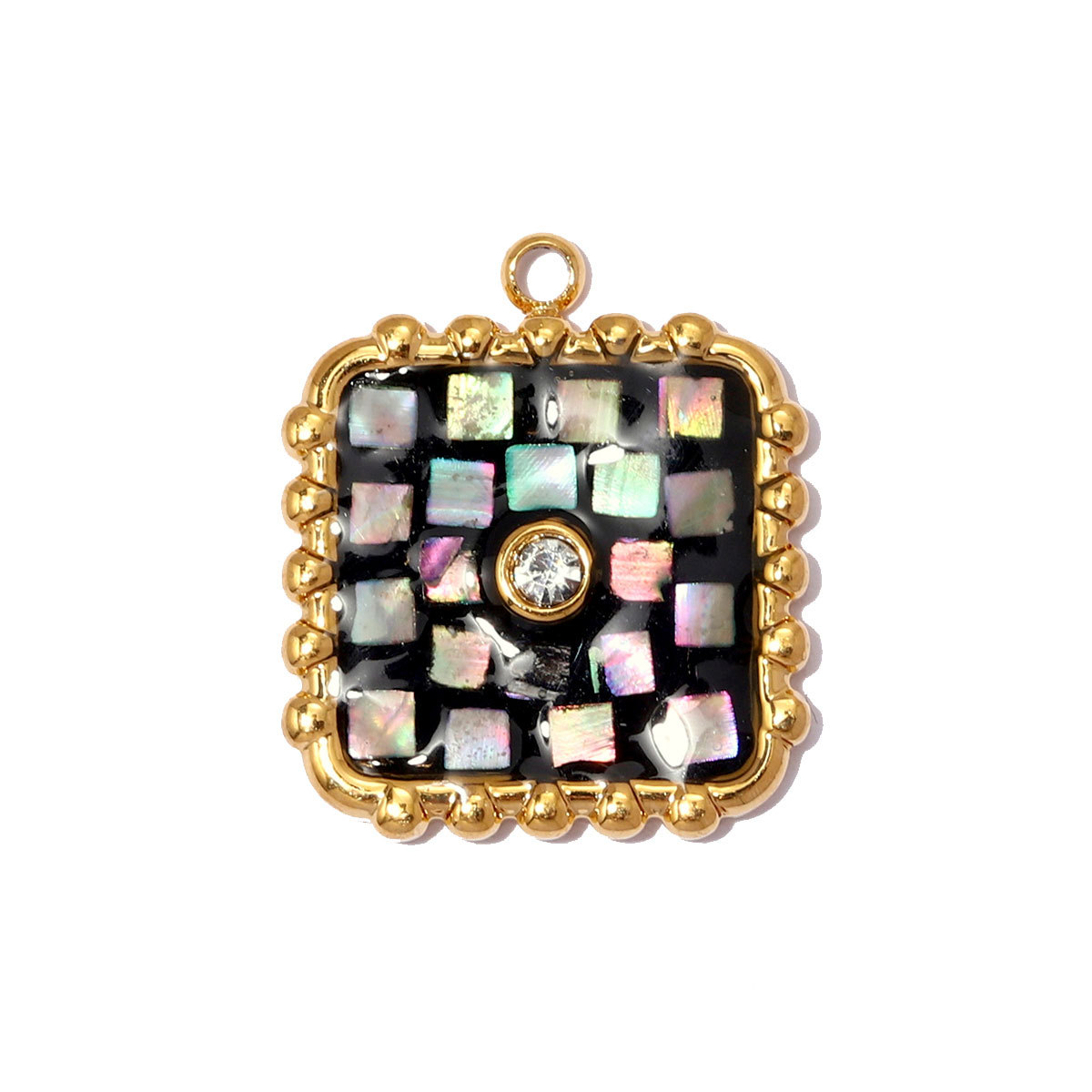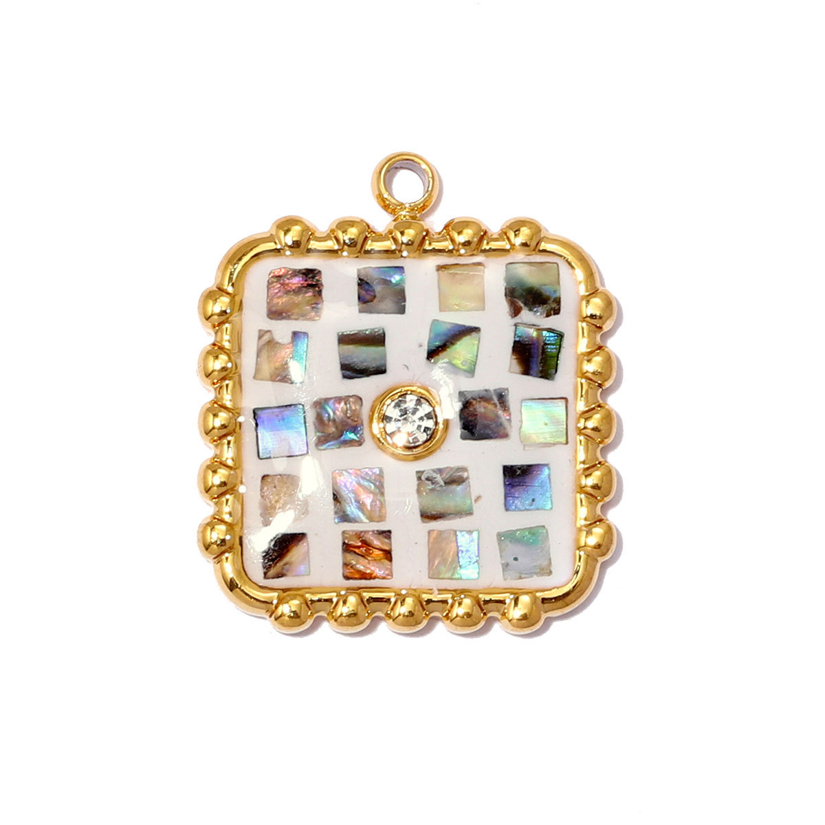 Pendentif coquille Modèle mosaïque , Acier inoxydable 304, avec coquille d'ormeau, Placage de couleur d'or, DIY & styles différents pour le choix & émail & avec strass, 3PC/sac, Vendu par sac