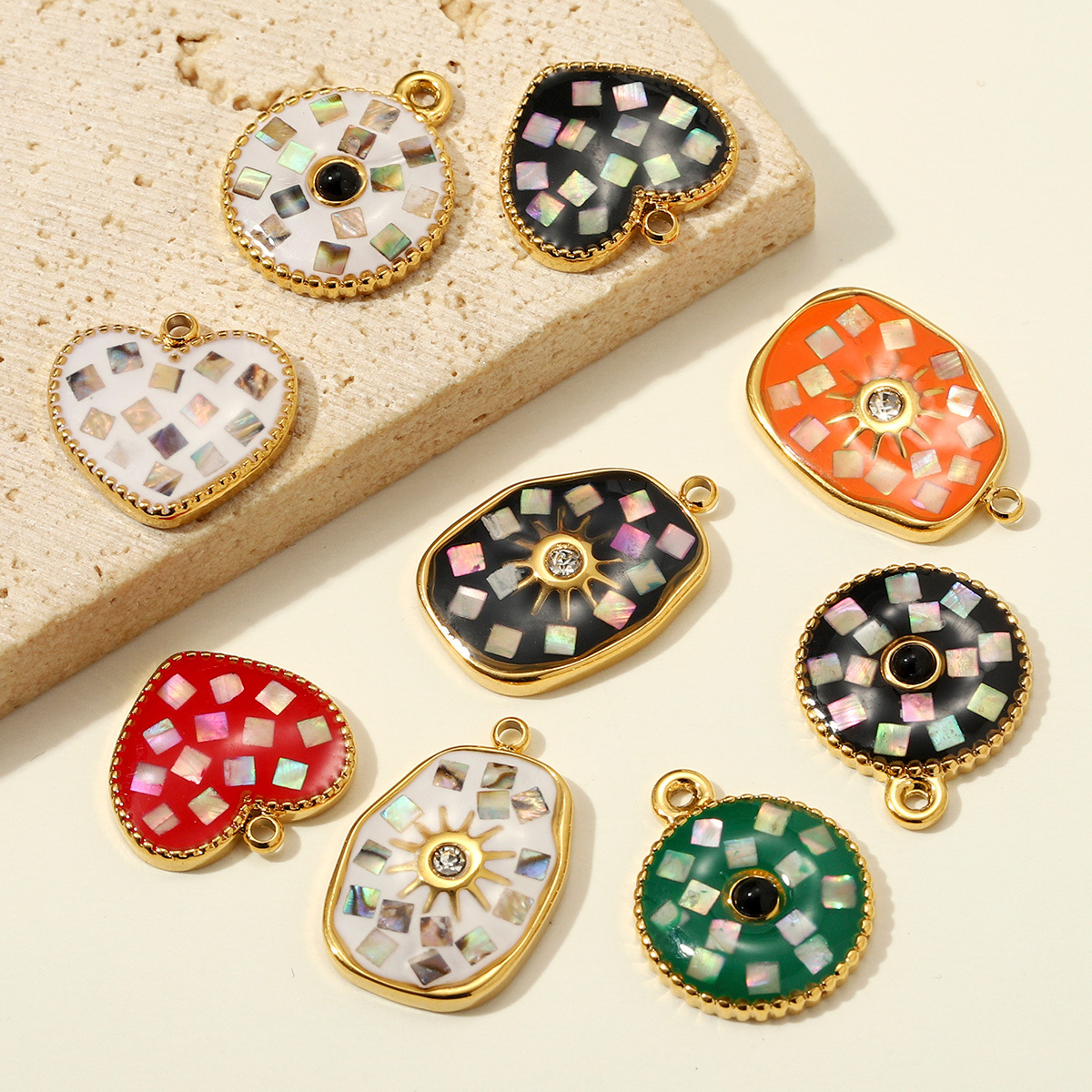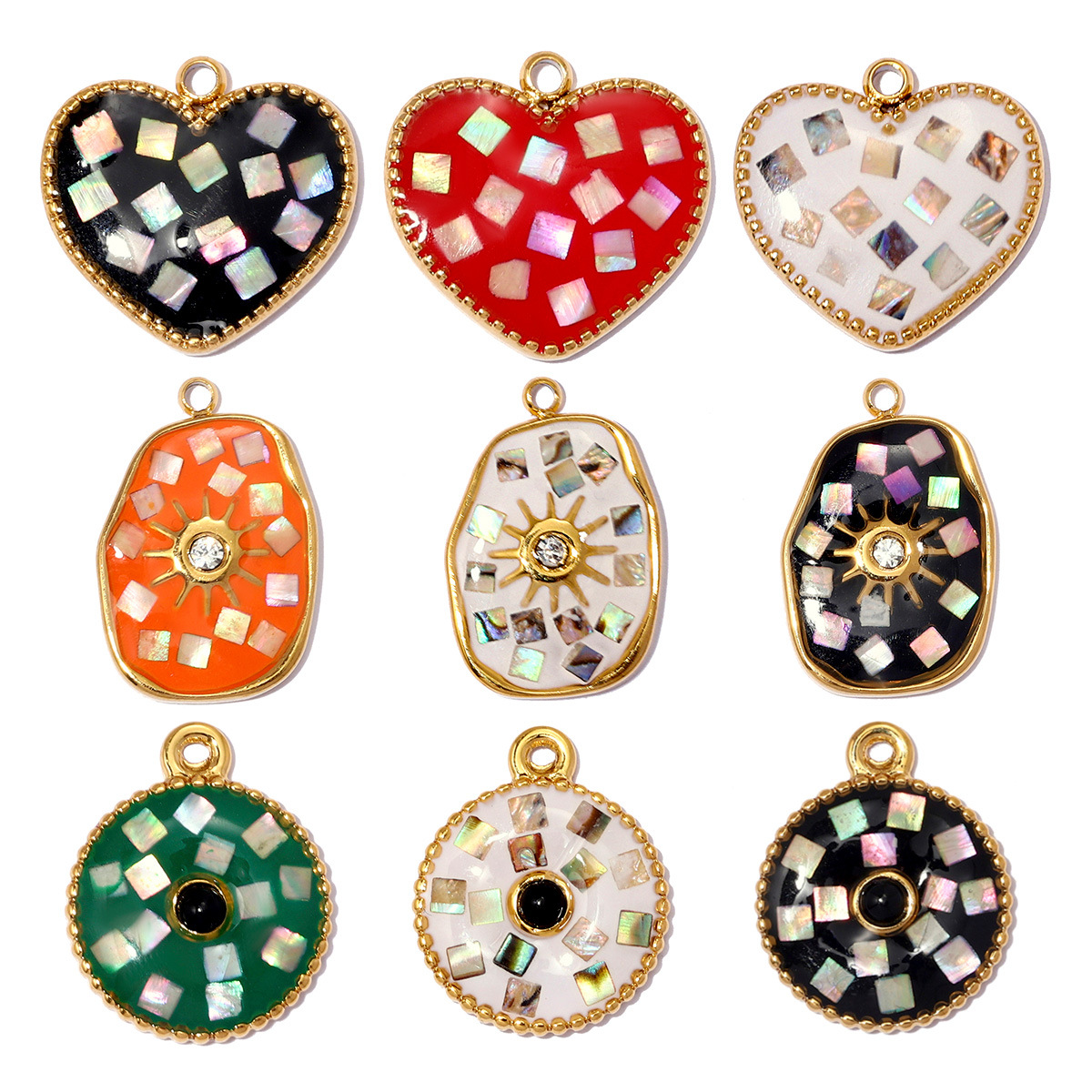 Pendentif coquille Modèle mosaïque , Acier inoxydable 304, avec pierre gemme & coquille d'ormeau, Placage, DIY & styles différents pour le choix & émail & avec strass, 3PC/sac, Vendu par sac