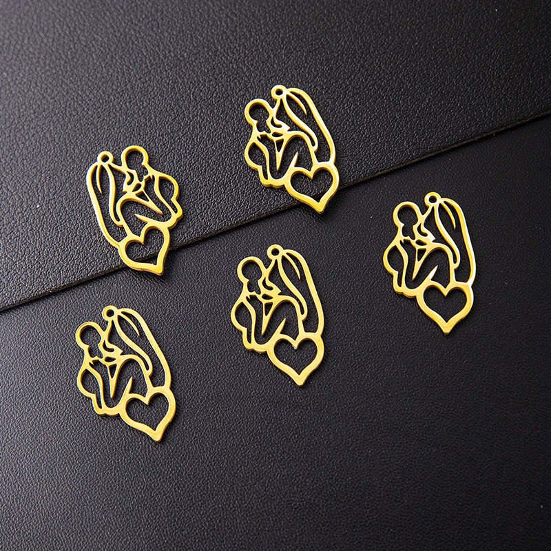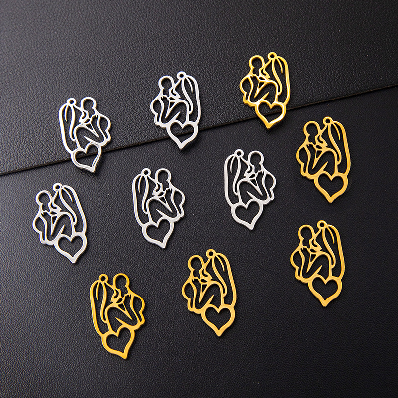Pendentif creux en acier inoxydable, Acier inoxydable 304, Mère et bébé, Placage, DIY, plus de couleurs à choisir, 10PC/sac, Vendu par sac