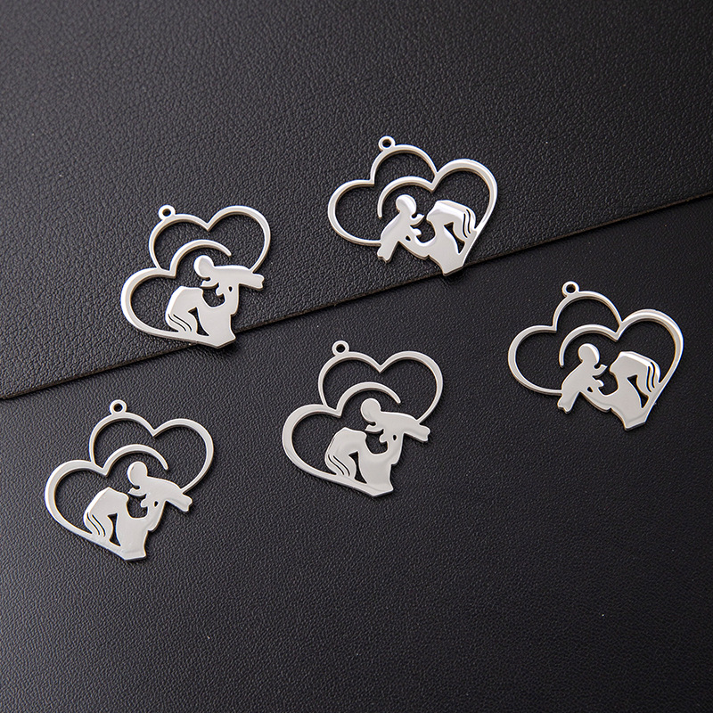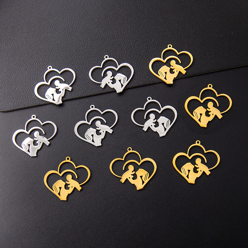 Pendentif creux en acier inoxydable, Acier inoxydable 304, coeur, Placage, DIY, plus de couleurs à choisir, 10PC/sac, Vendu par sac