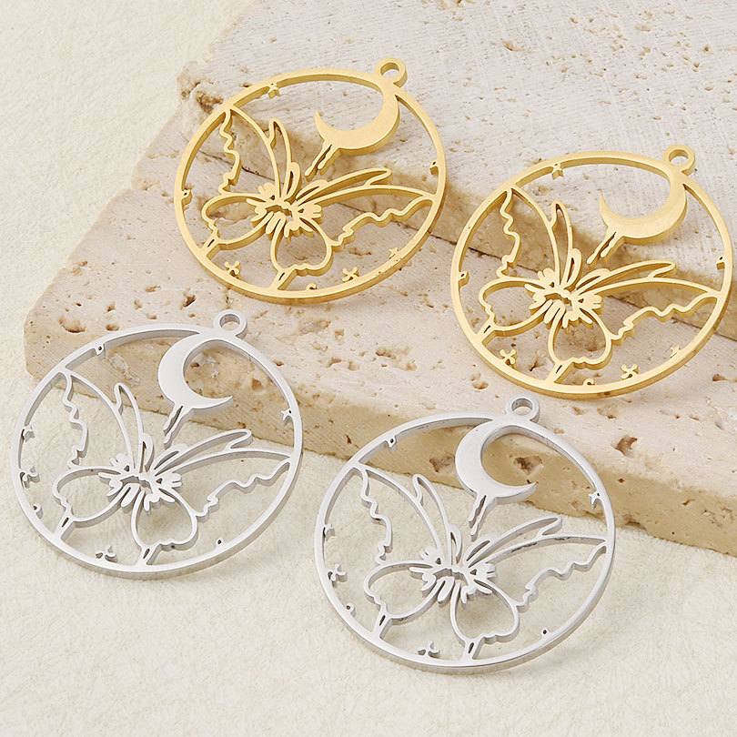 Pendentif creux en acier inoxydable, Acier inoxydable 304, papillon, Placage, DIY, plus de couleurs à choisir, 10PC/sac, Vendu par sac