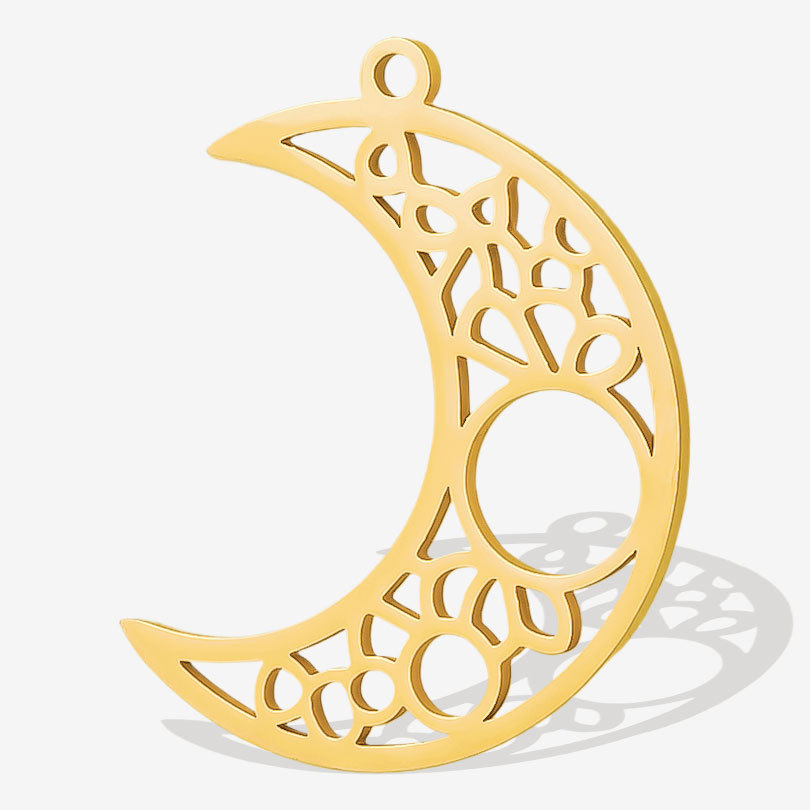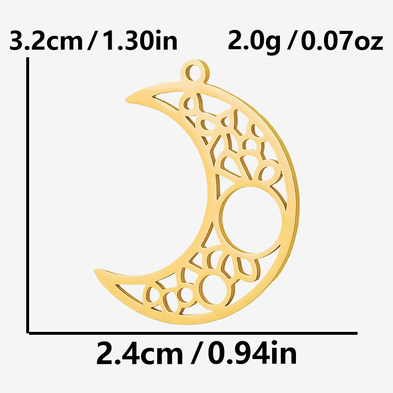 Pendentif creux en acier inoxydable, Acier inoxydable 304, lune, Placage, DIY, plus de couleurs à choisir, 10PC/sac, Vendu par sac