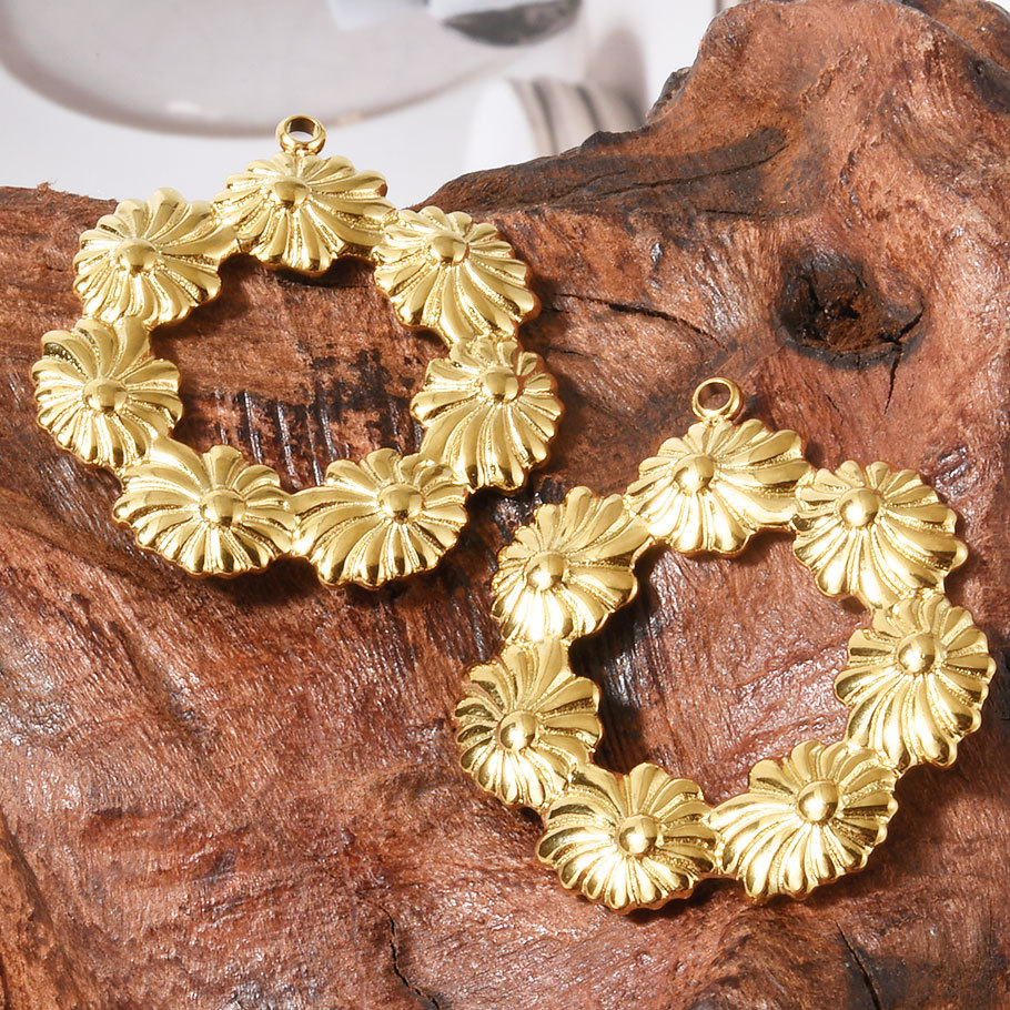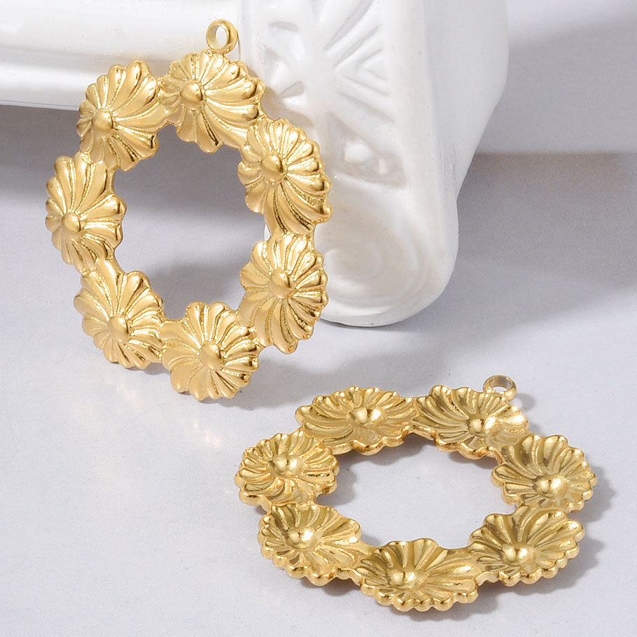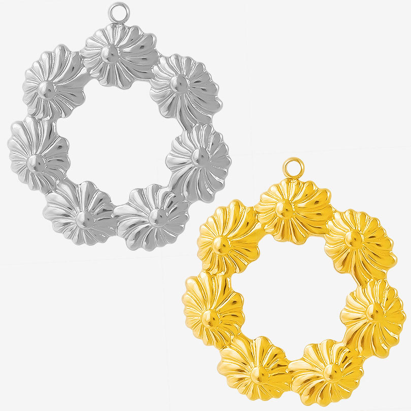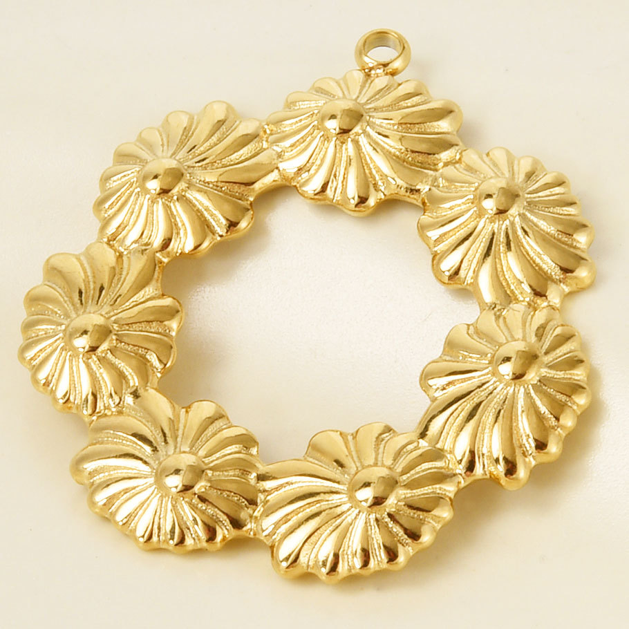 Pendentif creux en acier inoxydable, Acier inoxydable 304, Plat rond, couleur originale Environ Vendu par PC