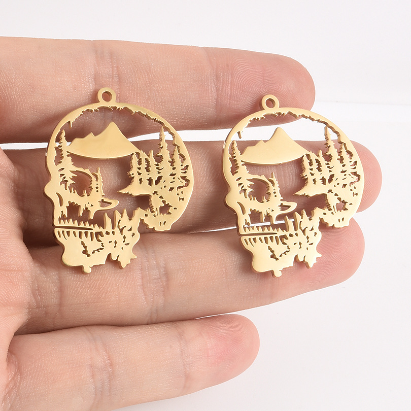 Pendentif creux en acier inoxydable, Acier inoxydable 304, crane, Placage, DIY, plus de couleurs à choisir, 10PC/sac, Vendu par sac