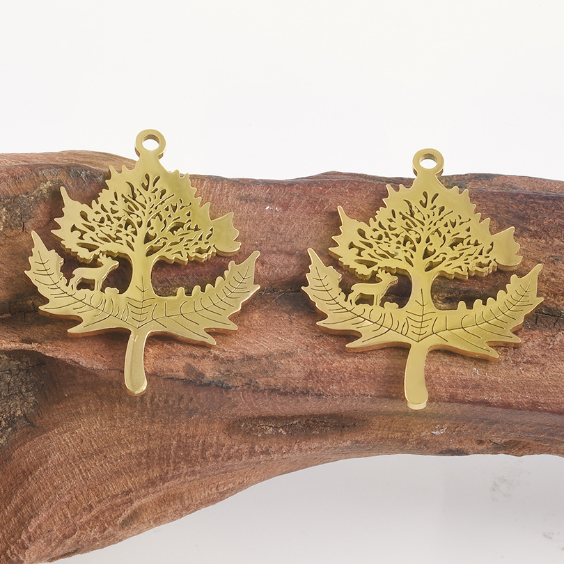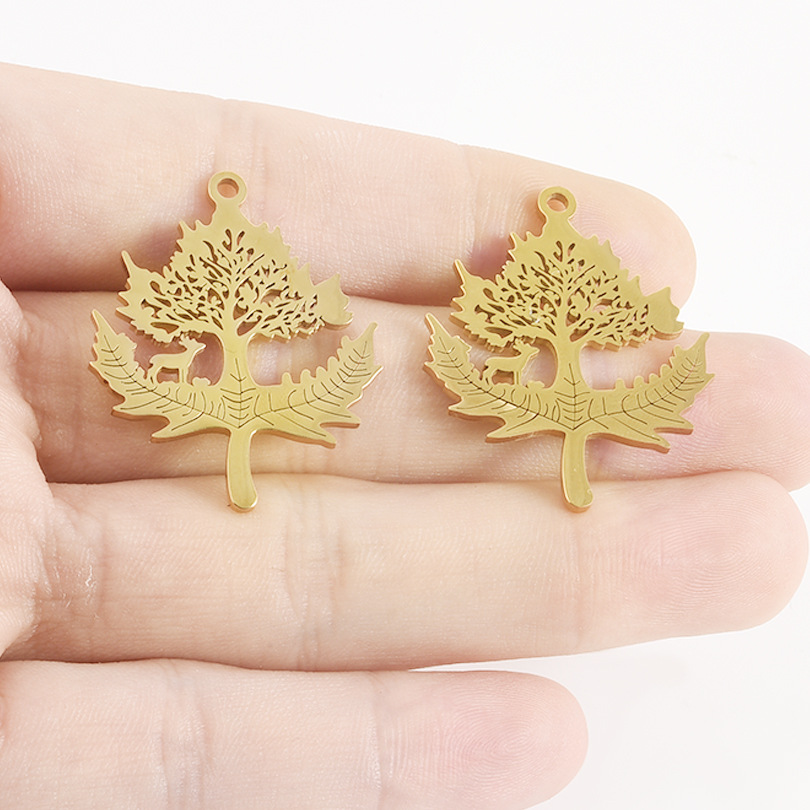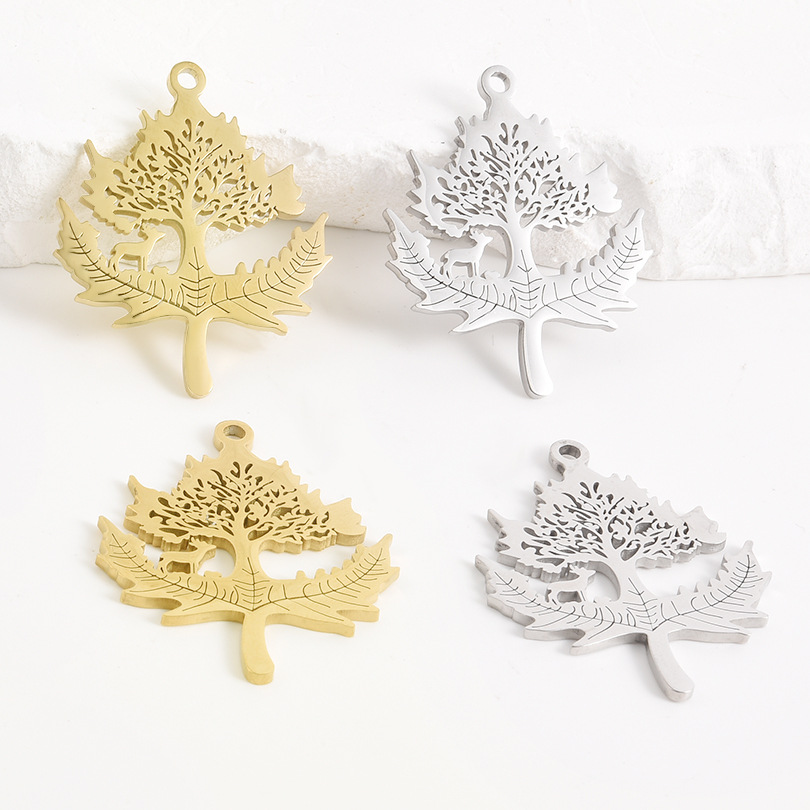 Pendentif creux en acier inoxydable, Acier inoxydable 304, Feuille d'érable, Placage, DIY, plus de couleurs à choisir, 10PC/sac, Vendu par sac