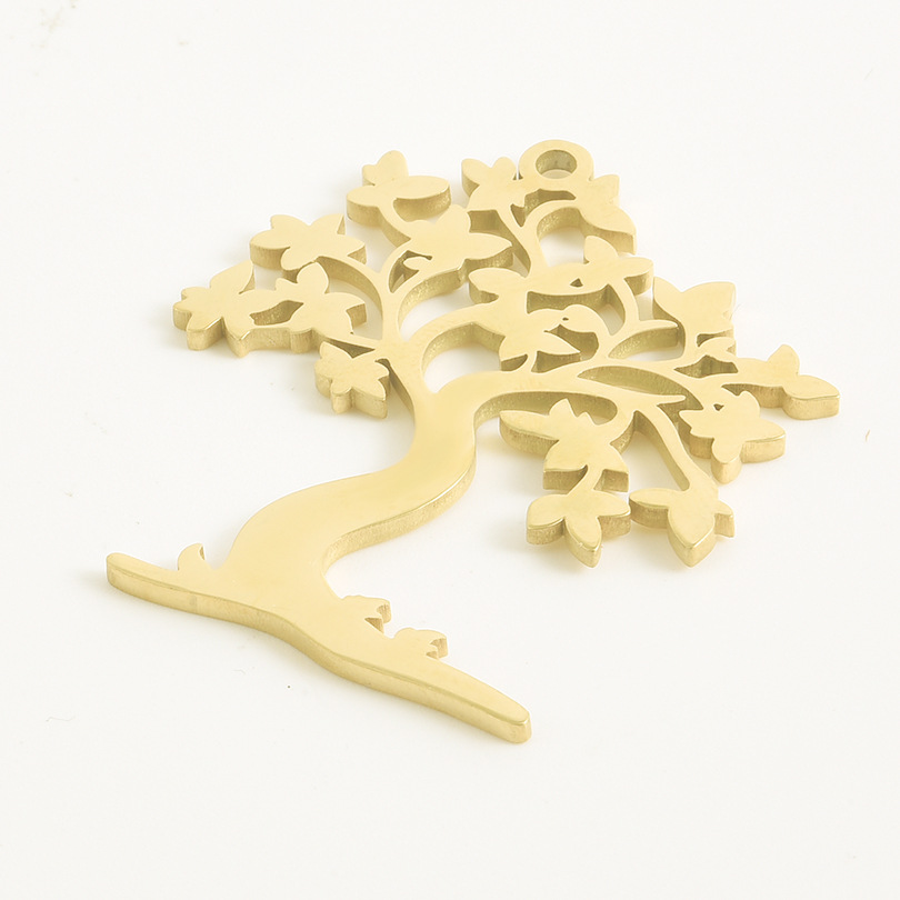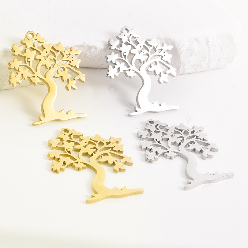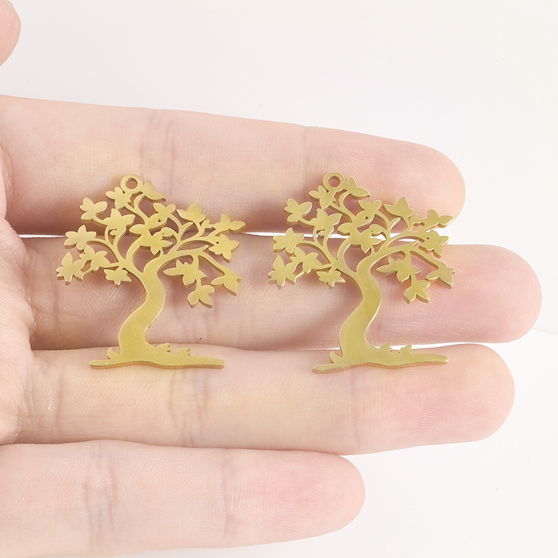 Pendentif creux en acier inoxydable, Acier inoxydable 304, arbre, Placage, DIY, plus de couleurs à choisir, 10PC/sac, Vendu par sac
