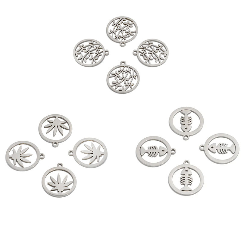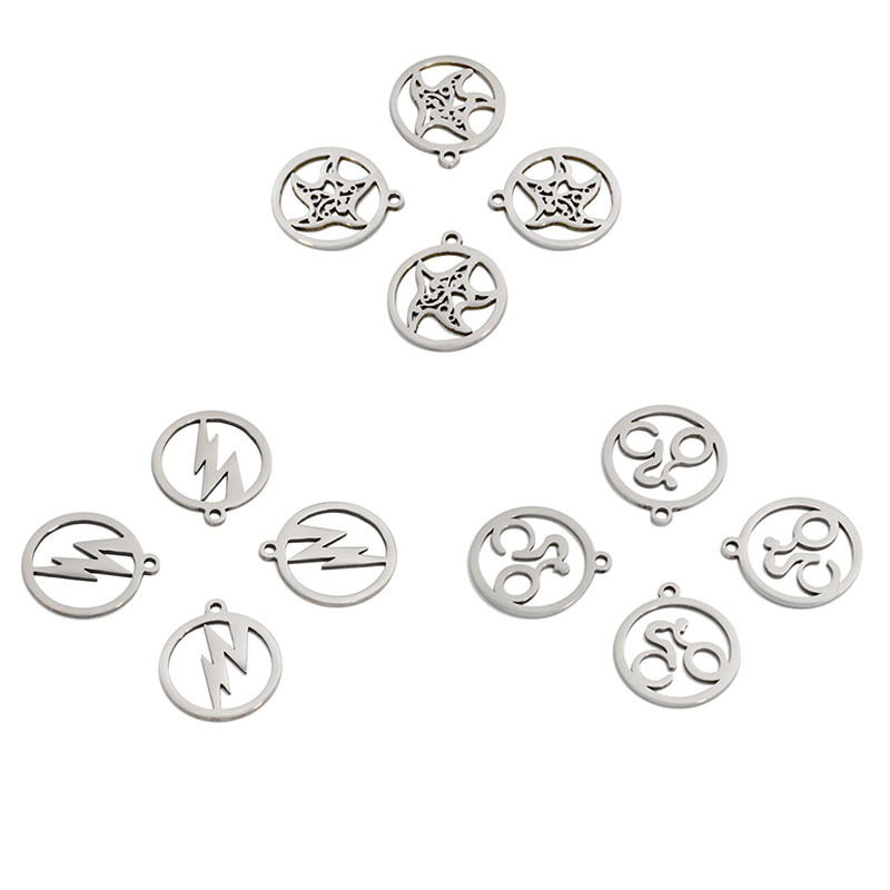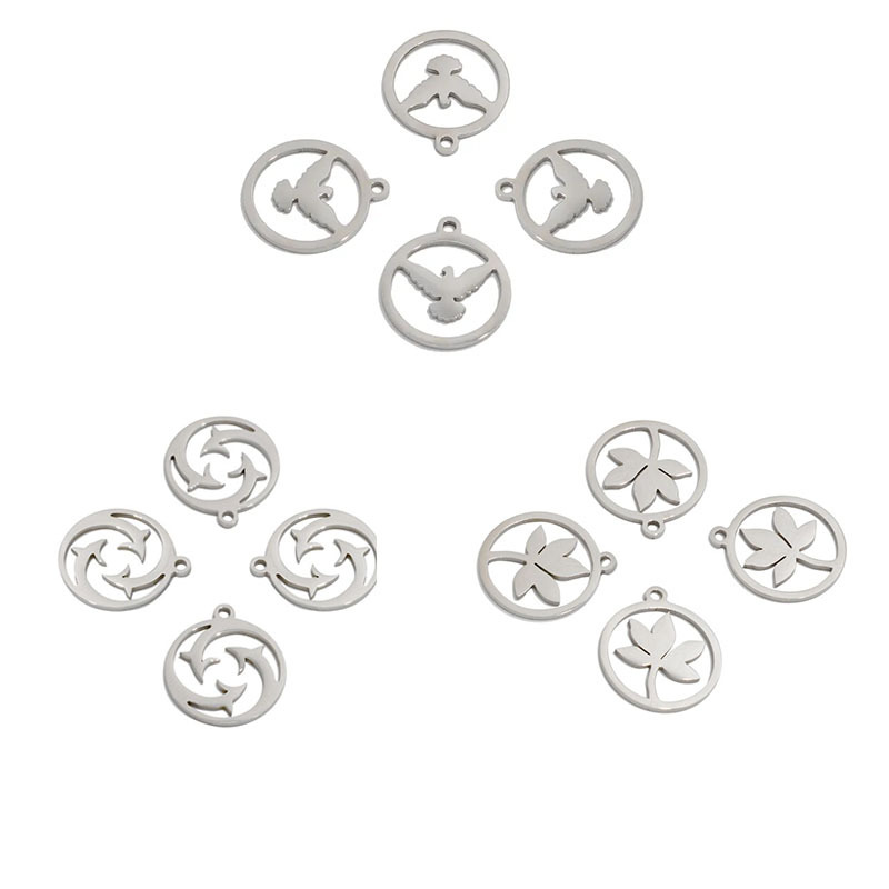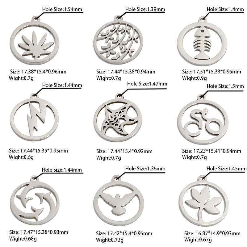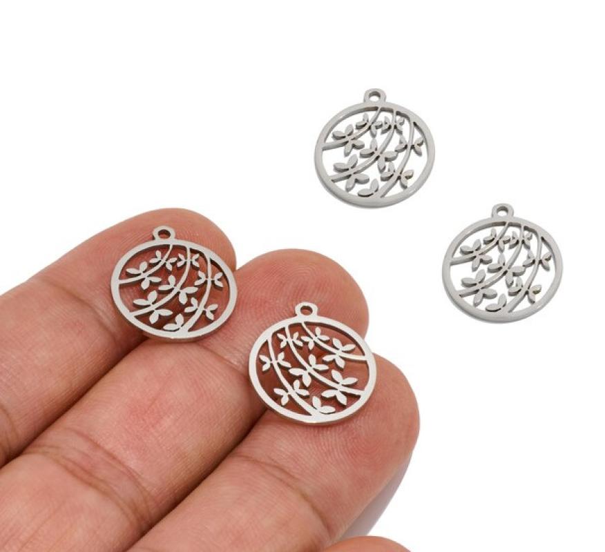 Pendentif creux en acier inoxydable, Acier inoxydable 304, Plat rond, couleur originale Environ Vendu par PC