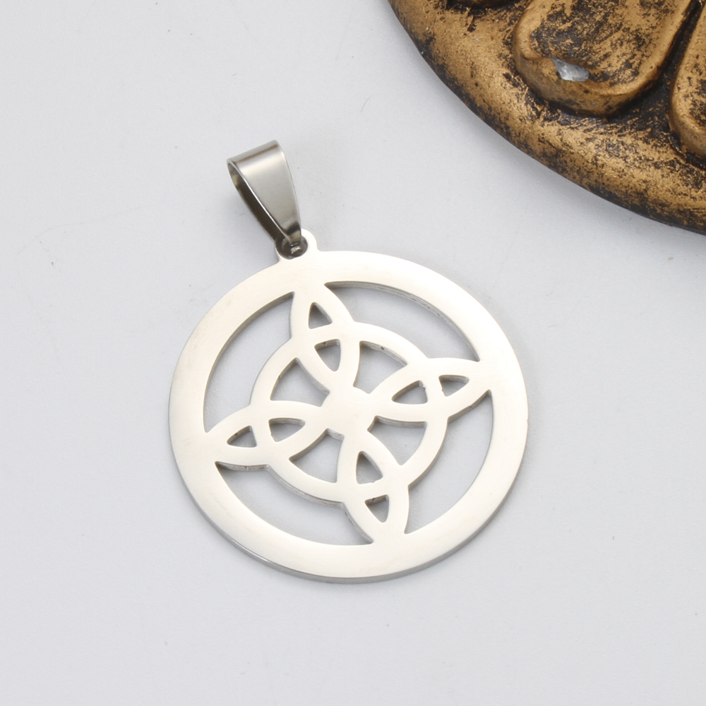 Pendentif creux en acier inoxydable, Acier inoxydable 304, Plat rond, couleur originale Environ Vendu par PC