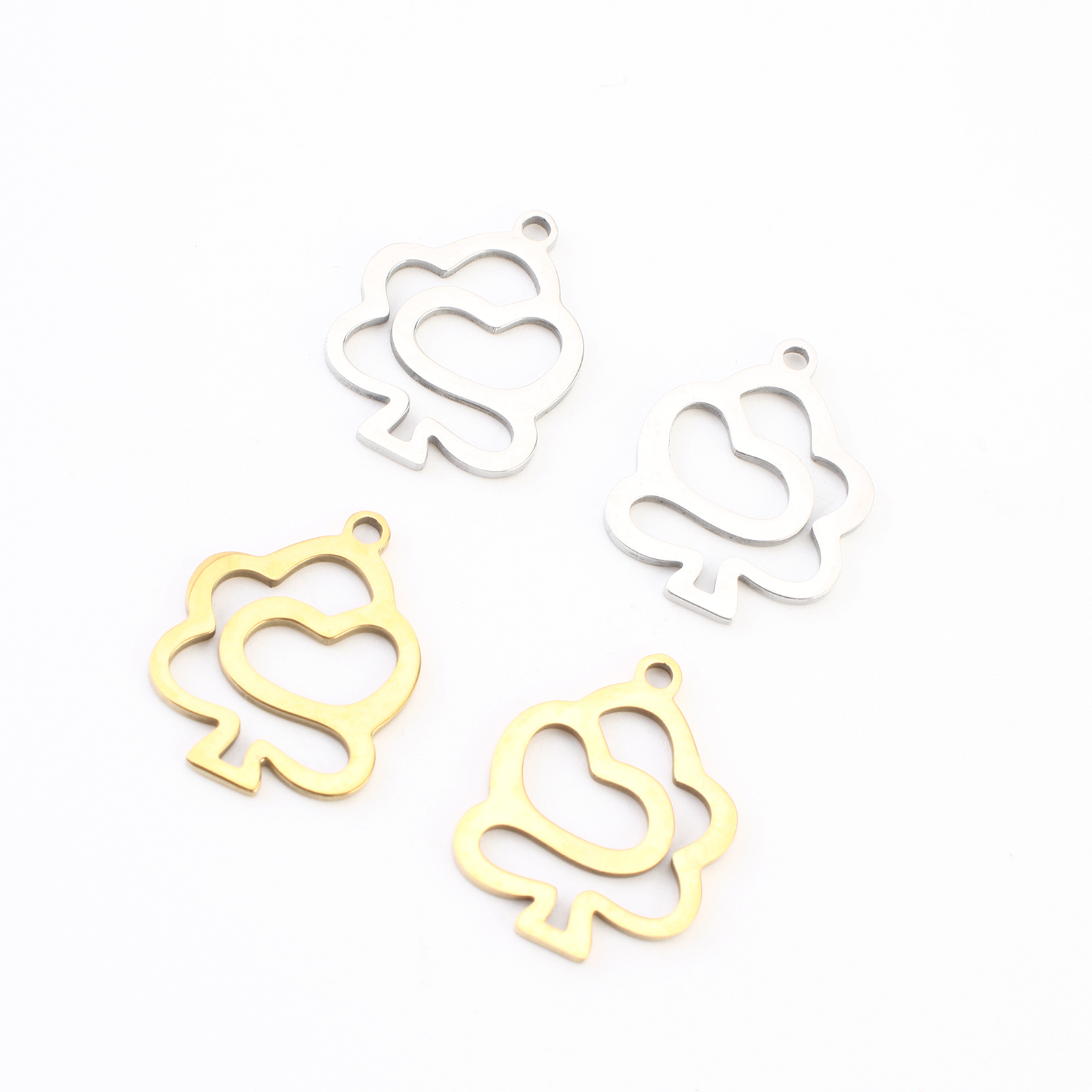 Pendentif creux en acier inoxydable, Acier inoxydable 304, Placage, DIY, plus de couleurs à choisir, 17x13x1mm, 20PC/lot, Vendu par lot