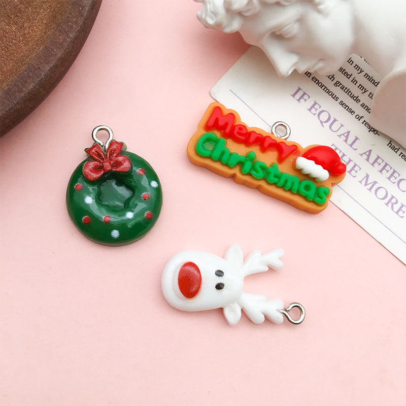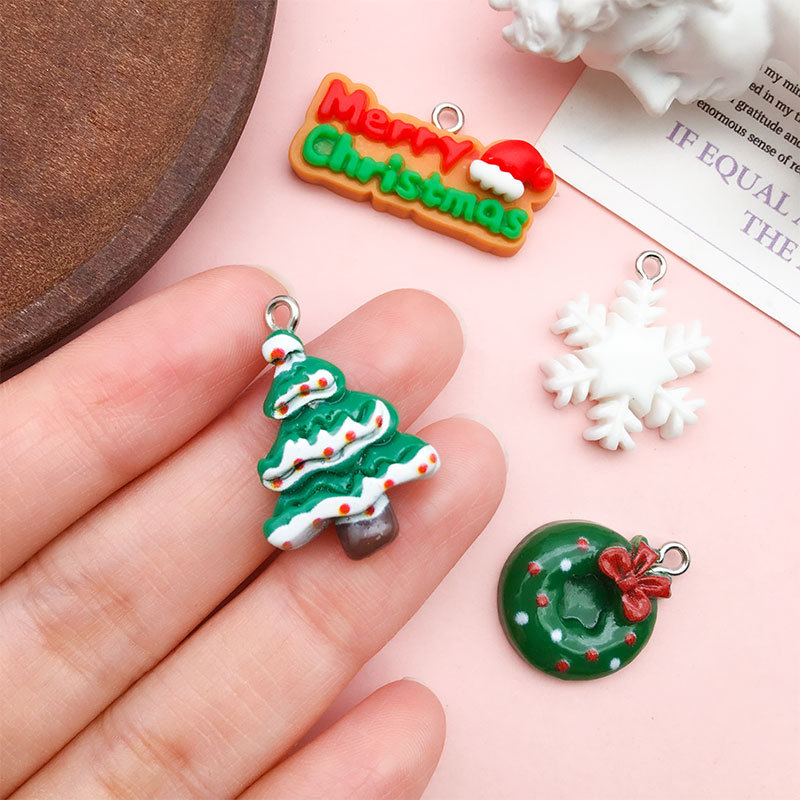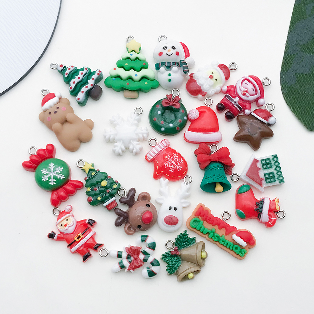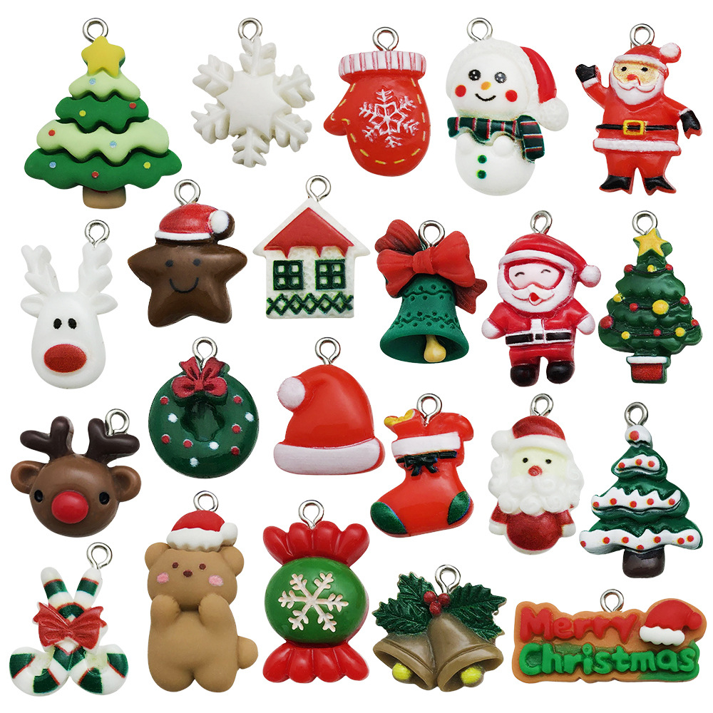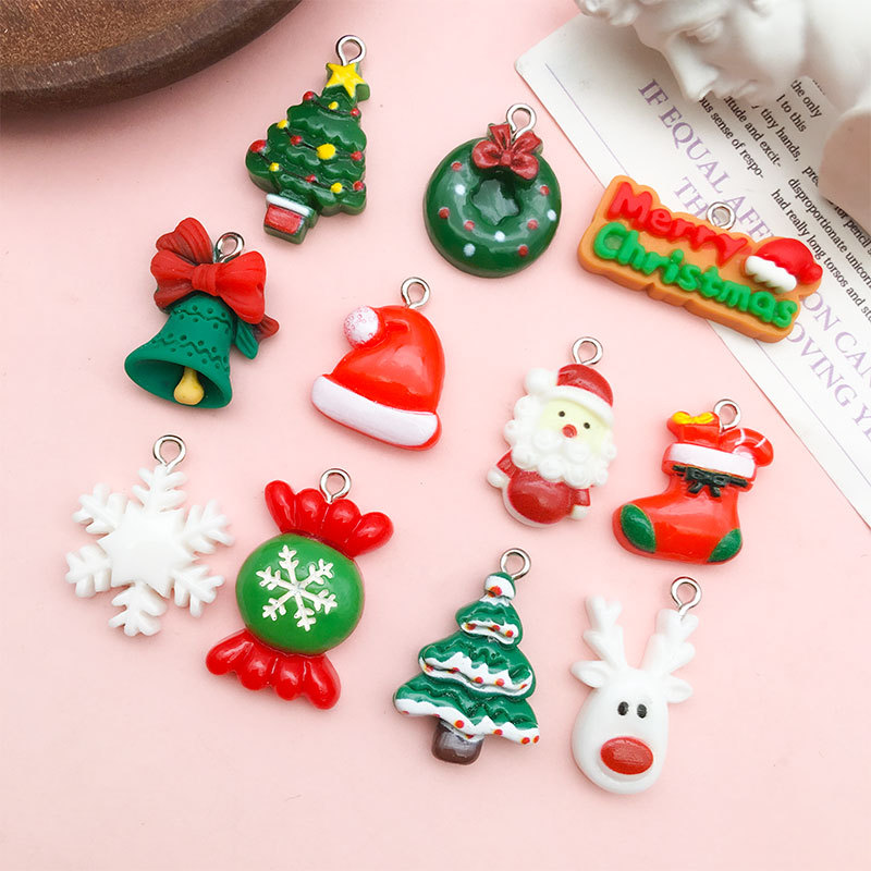 Pendentif de Noël Résine, plastique, avec résine, goutté d'époxy, envoyé au hasard & Conception de Noël & DIY, plus de couleurs à choisir, 10PC/sac, Vendu par sac