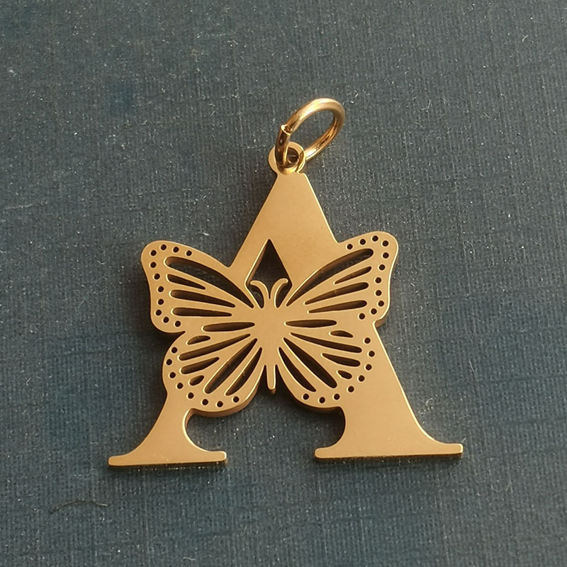 Pendentif de lettre en acier inoxydable, Lettre A, couleur originale Vendu par PC